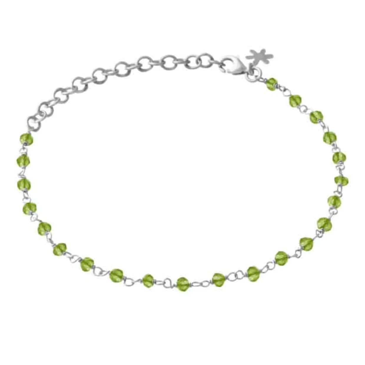 Super fint lille armbånd med små peridoter som måler 3-4 mm, kuglerne sidder flot på kæden.