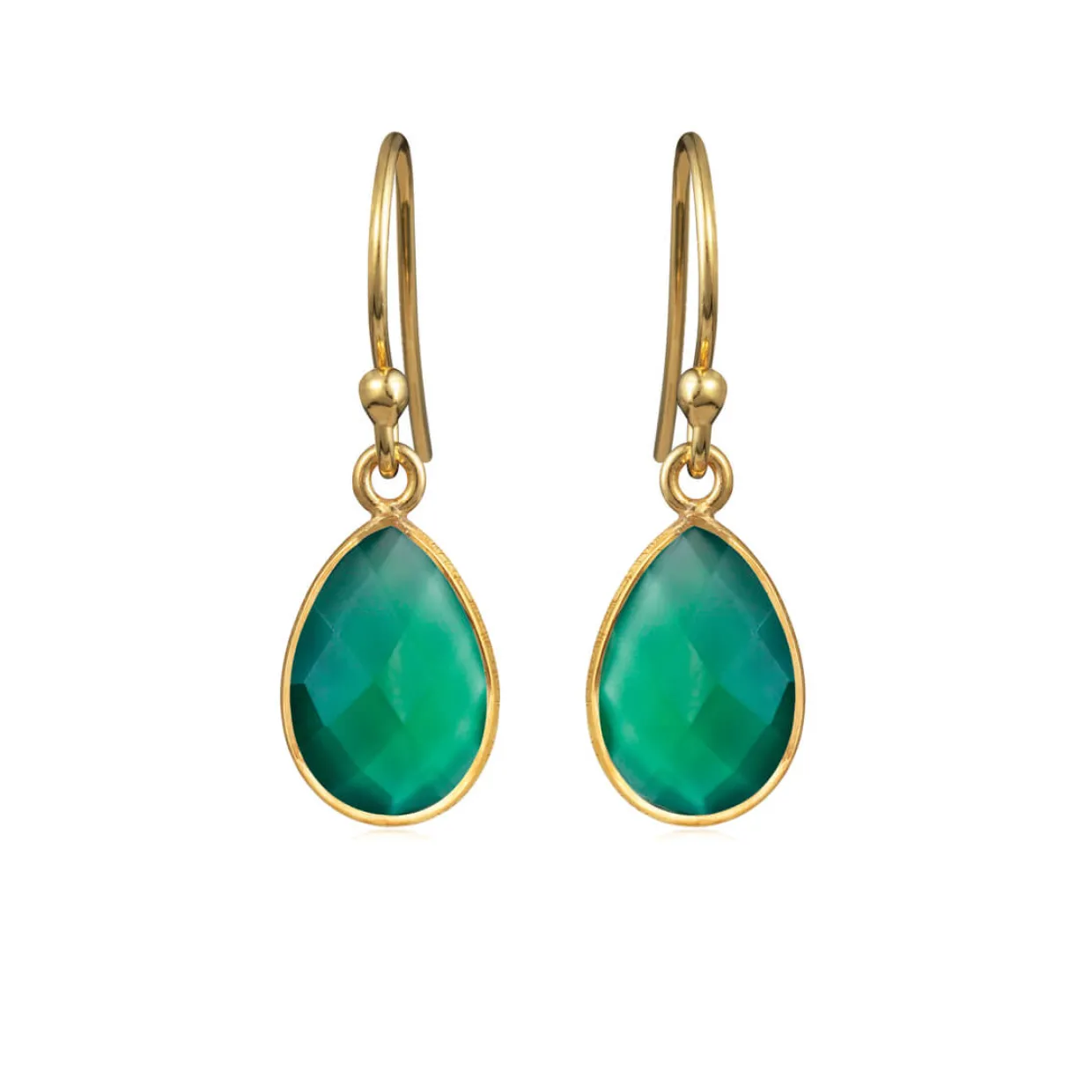 Sølv forgyldt øreringe som hænger med facet sleben grøn agat. Agaten er dråbe formet som måler 12 mm i højden og 8 mm i bredden.