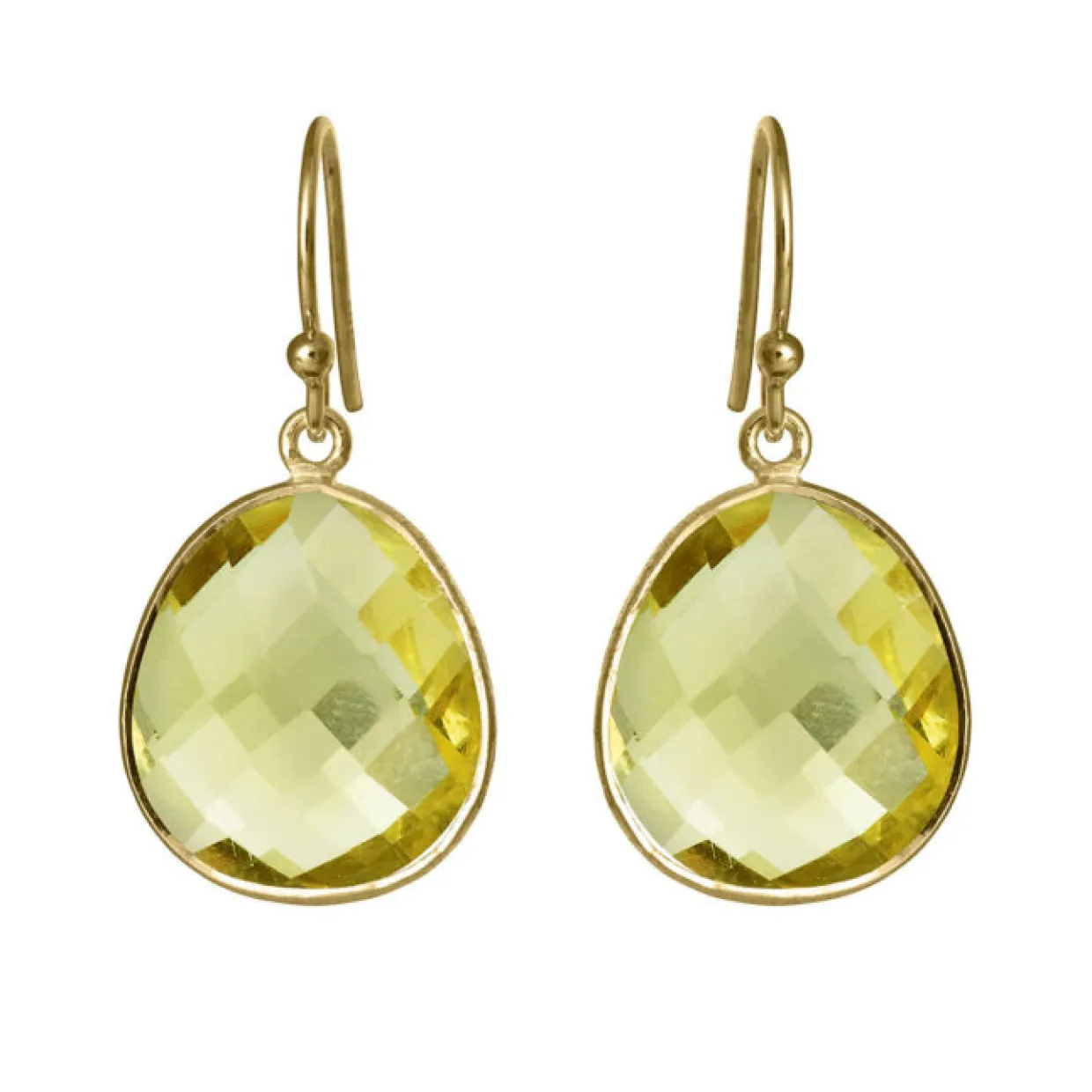 Smukke sølv forgyldte øreringe med lemon quartz , øreringene har en smuk facetteret overflade som får stenen til at skinne i lyset