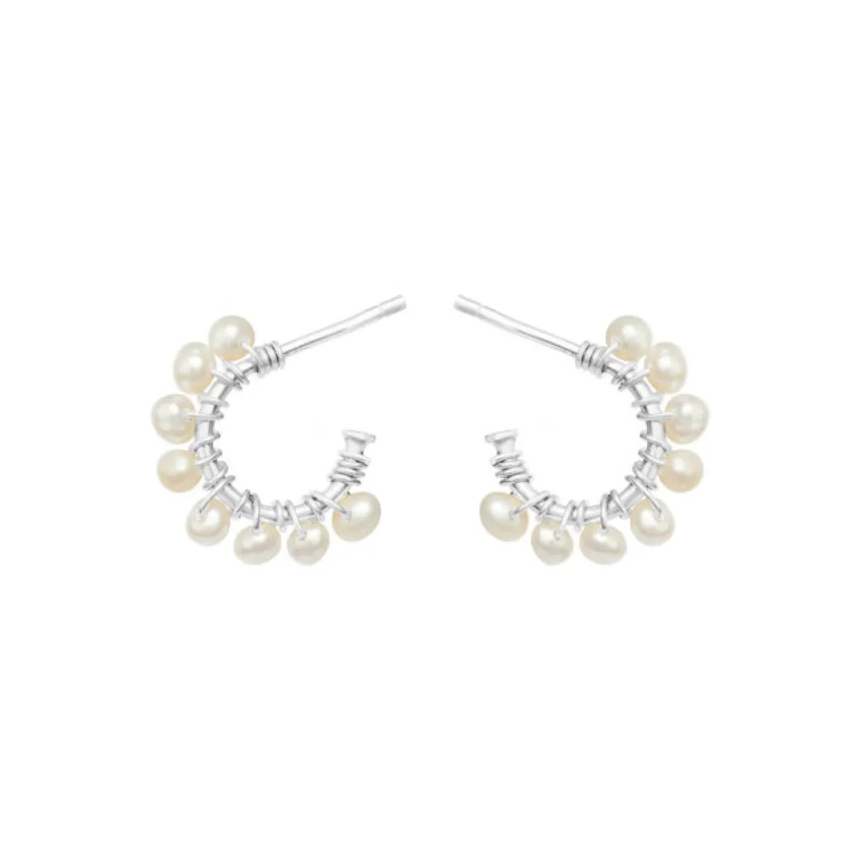 Smukke sølv halv creoler med perler på, perler er meget populær i øjeblikket til både piger og drenge