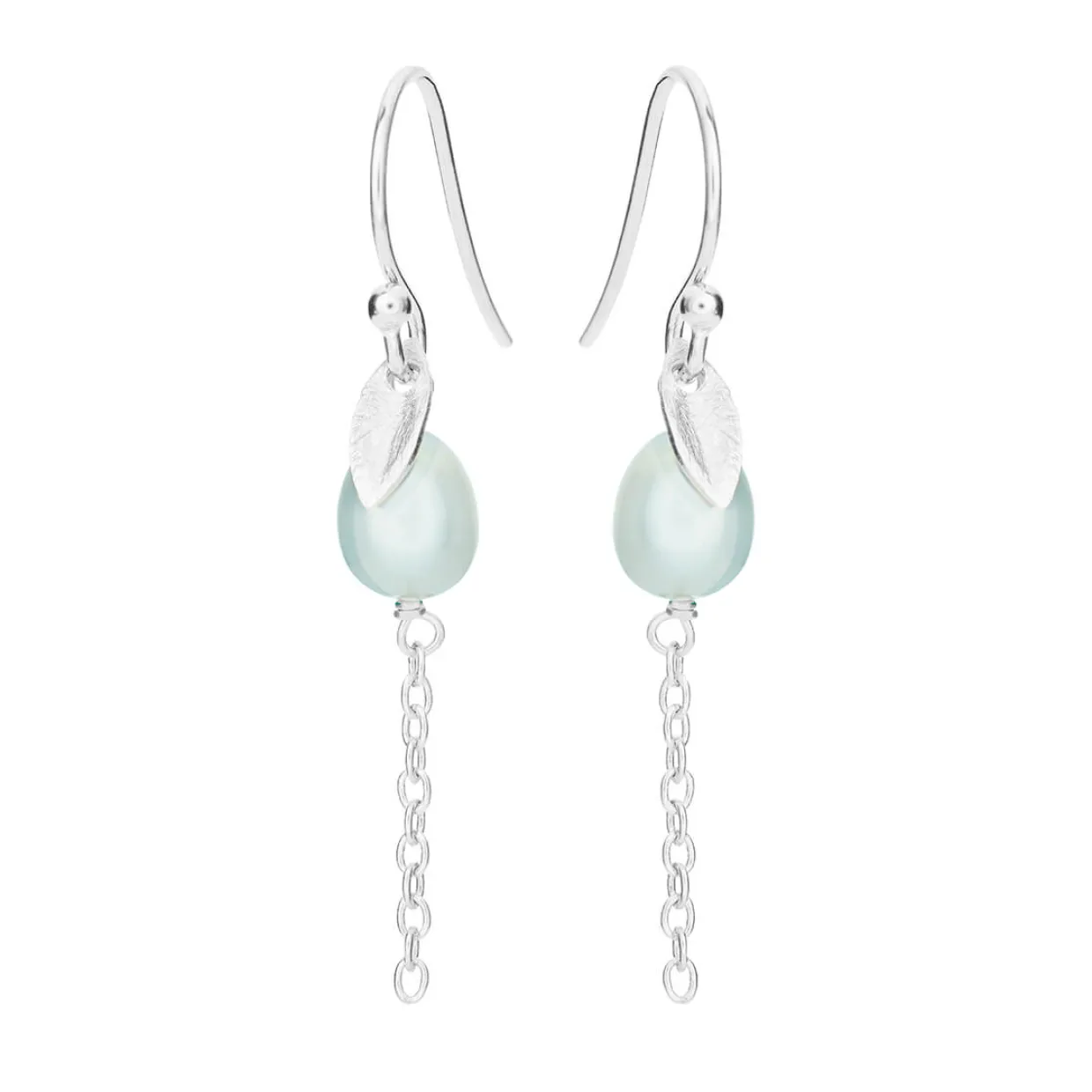 SUSANNE FRIIS BJØRNER SØLV ØRERINGE MED BLAD PERLE OG KÆDE – 5640-1-906
