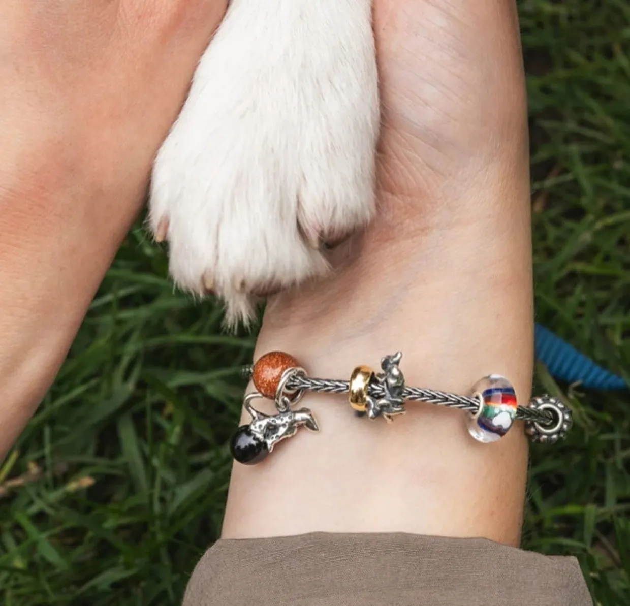 Troldekuglen grænseløs glæde er fremstillet i 925 Sterling sølv og forstiller tre legesyge hundehvalpe springer omkring.