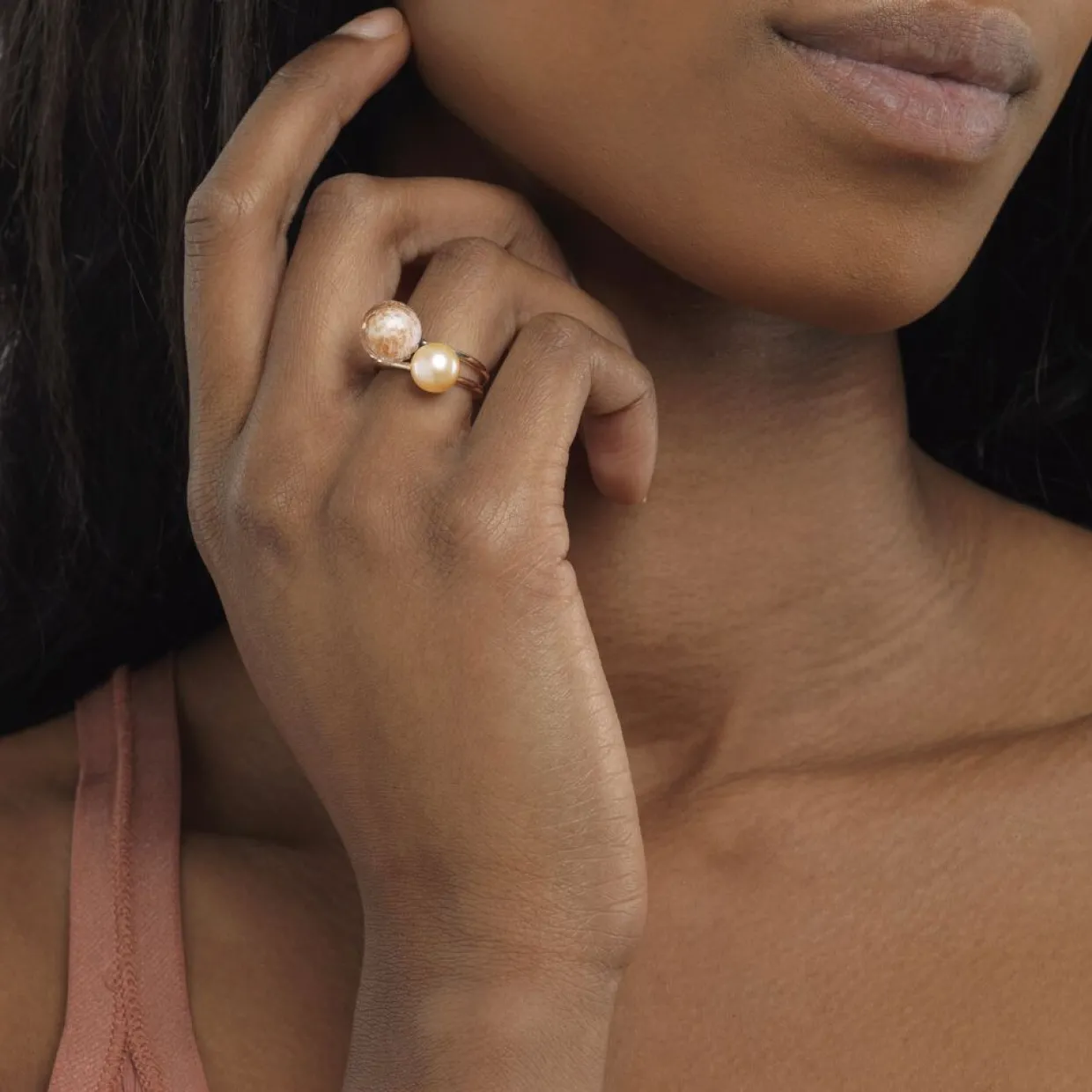 Blomsterskygge ringen er fremstillet i sterlingsølv med en facetsleben glaskugle på ringskinnens top.