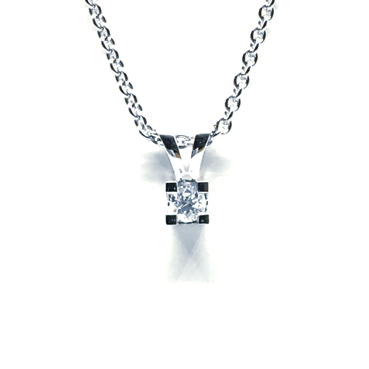 14 KARAT HVIDGULD EVA VEDHÆNG MED BRILLANT 0,10 CT. W/SI + SØLV KÆDE