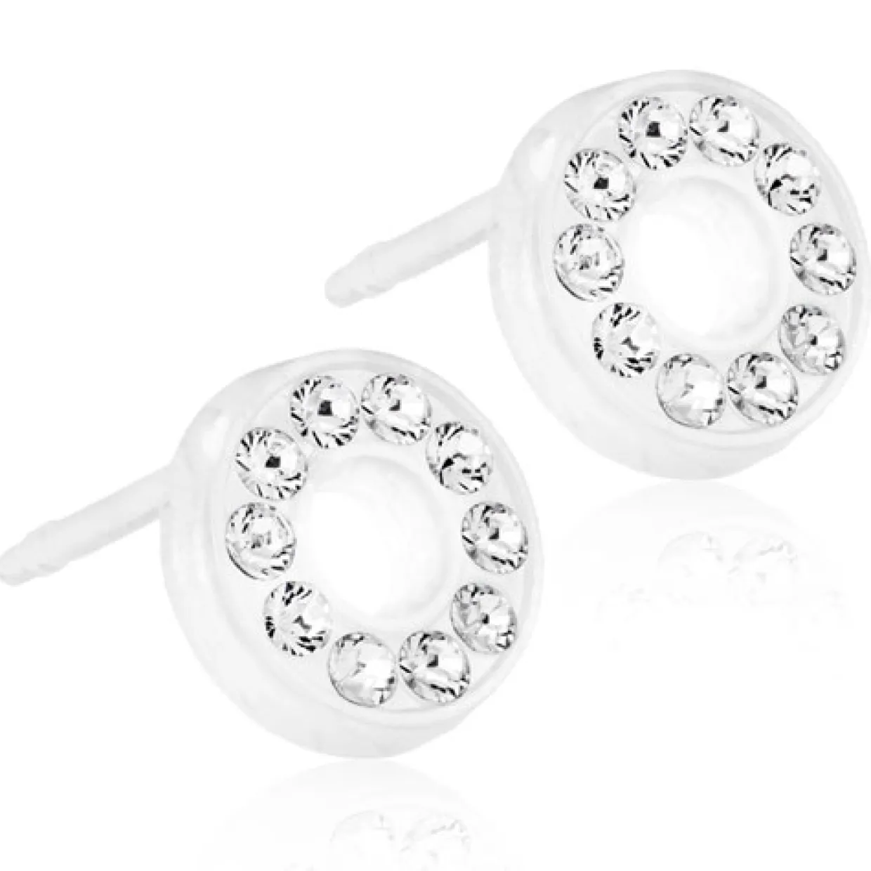 Øreringene er fremstillet i rent medicinsk plast og er pyntet med fine Swarowski-krystaller.