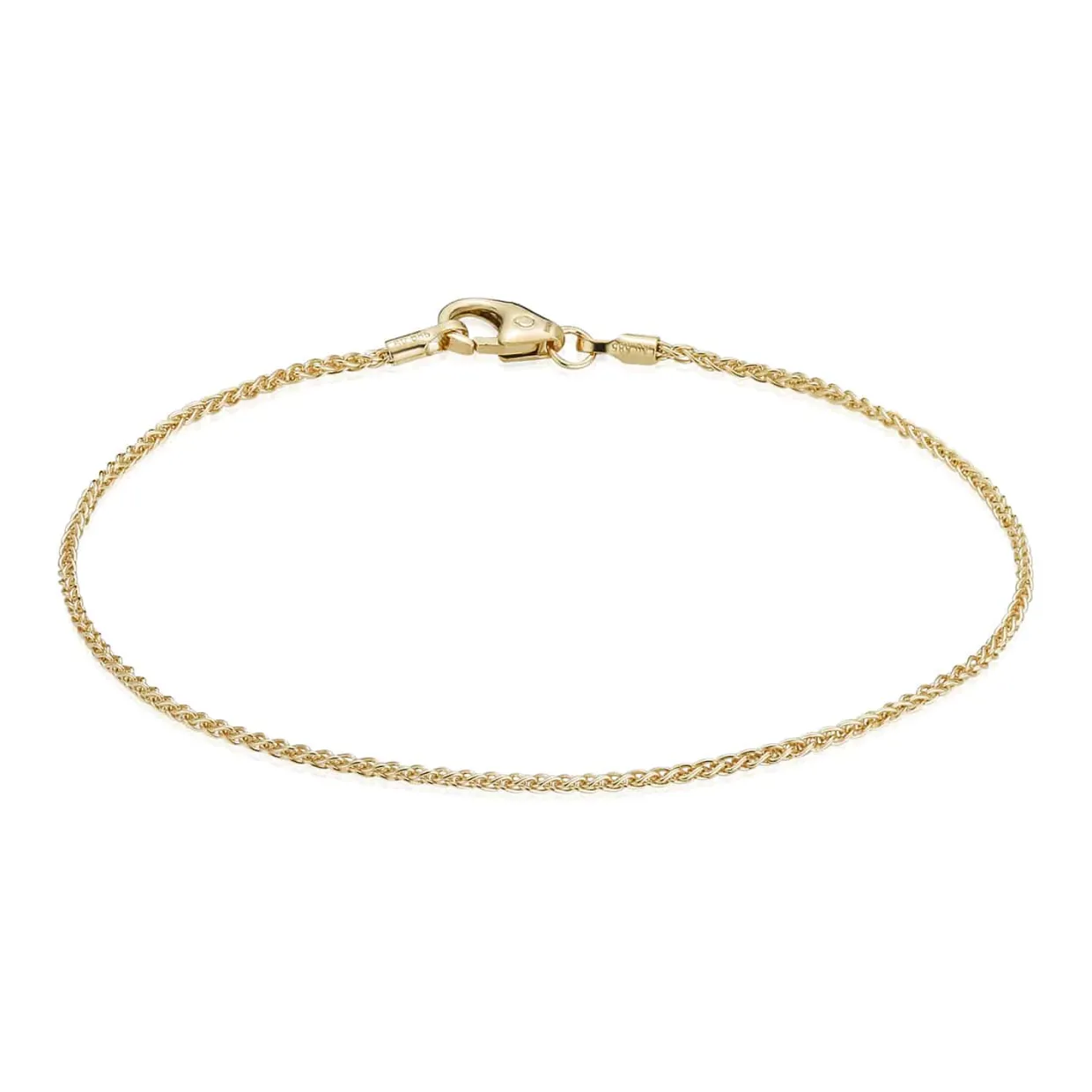 Armbåndet er lavet i massiv 14 karat guld med en kraftig karabin lås.
