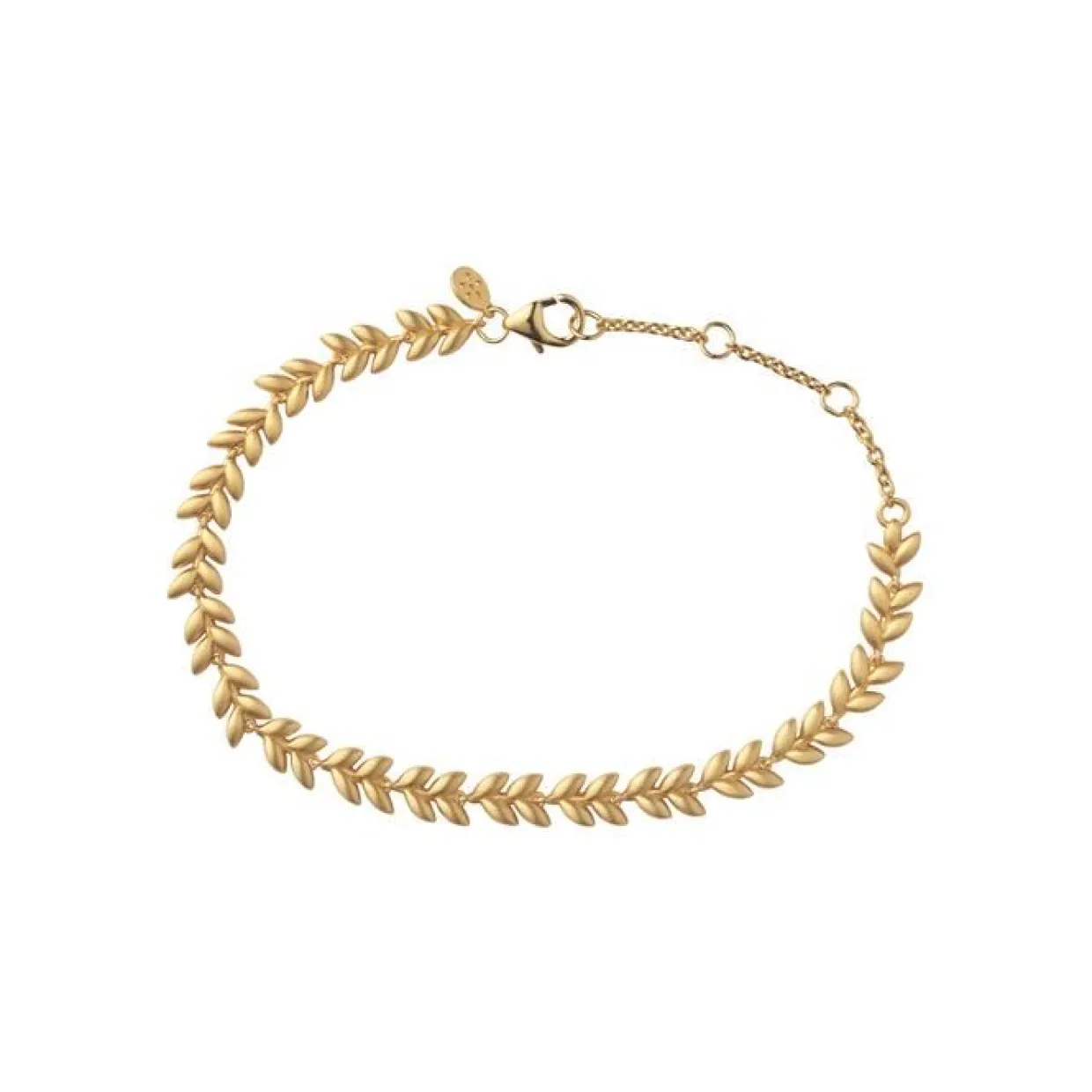 Dette armbånd er inspireret af forårs bladende på træerne, livet der pibler frem alle steder, og kæmper om pladserne i solen. Dette smukke armbånd vil passe til hver en anledning. Armbåndet er belagt med 14 KT guld og måler 19,5 cm, med mulighed for at justere størrelsen.