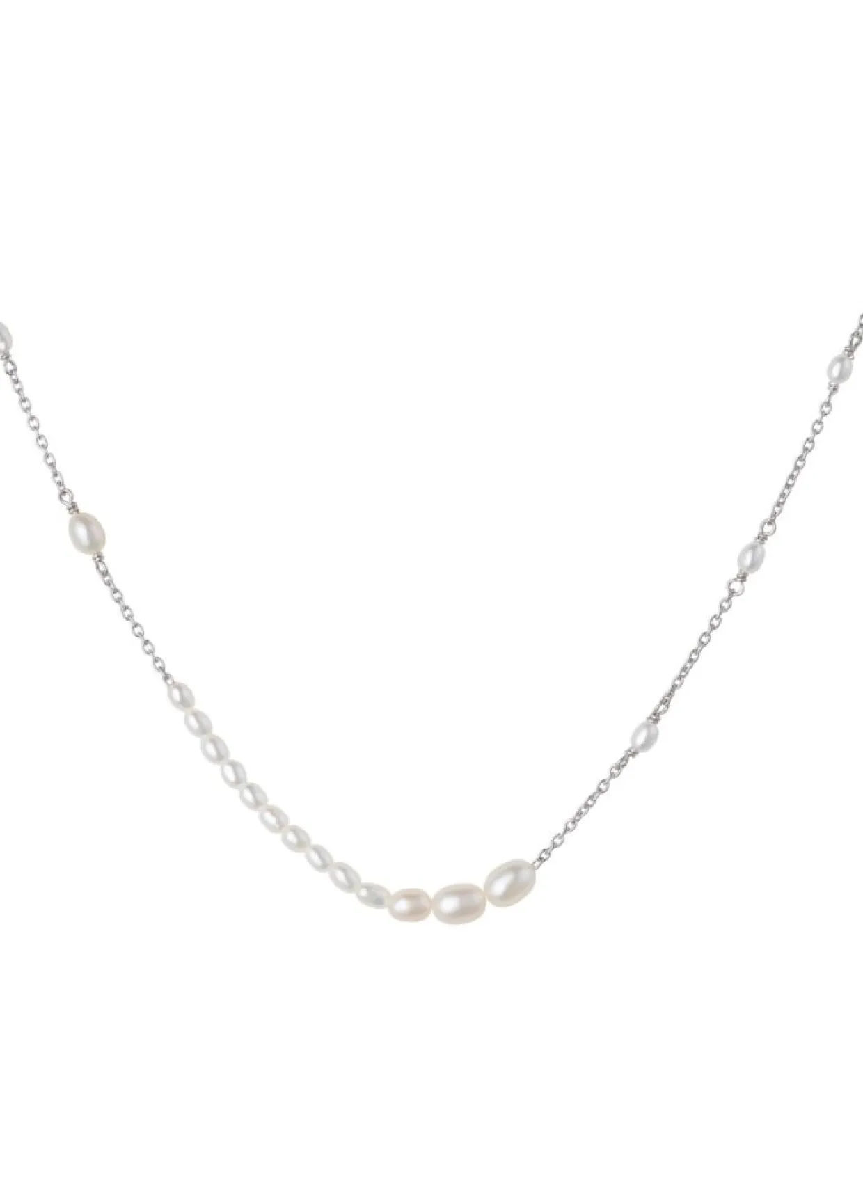 Smuk og meget klassisk sølv halskæde med ferskvandskulturperler på snor.