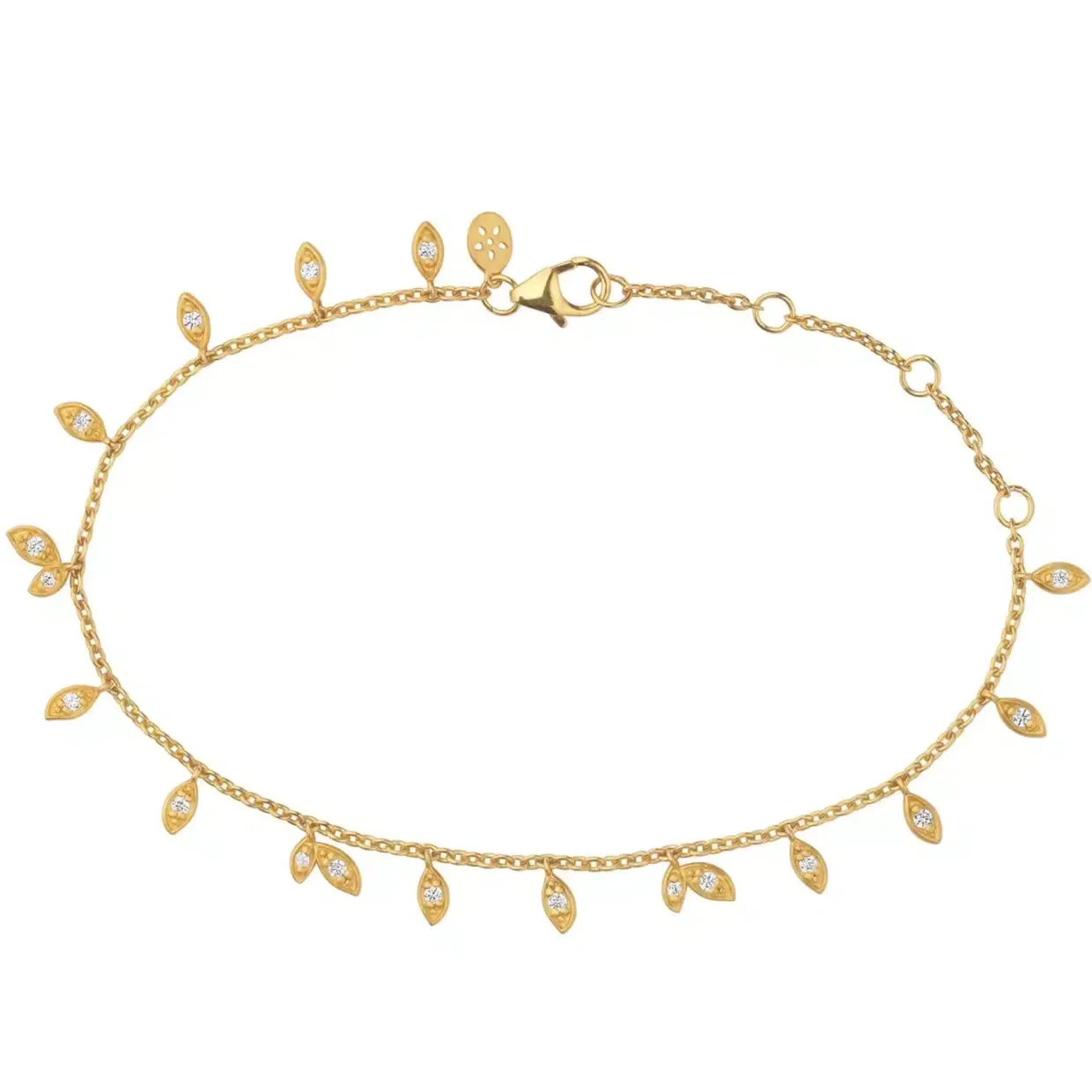 Flot sølv forgyldt armbånd med blade med zirkoner påsat kæden.