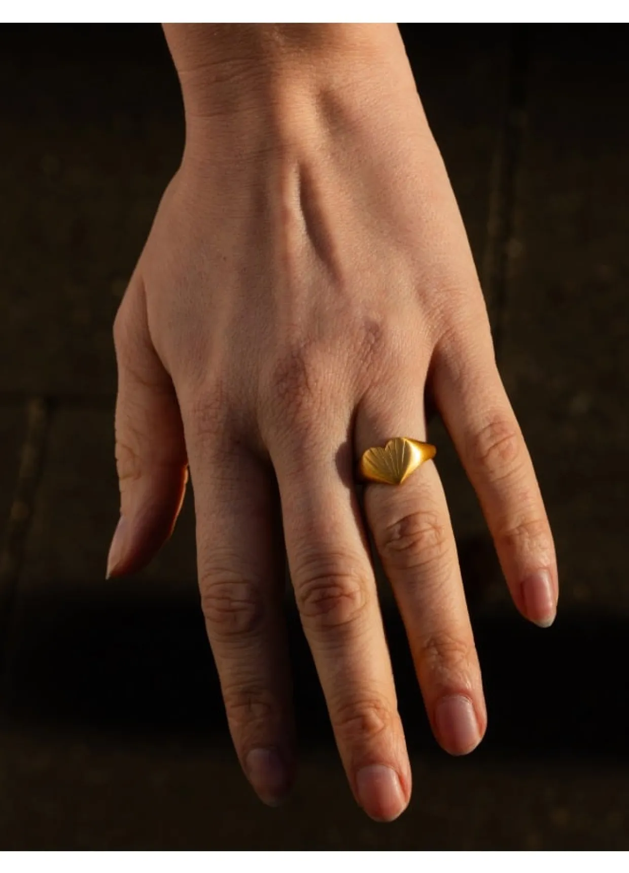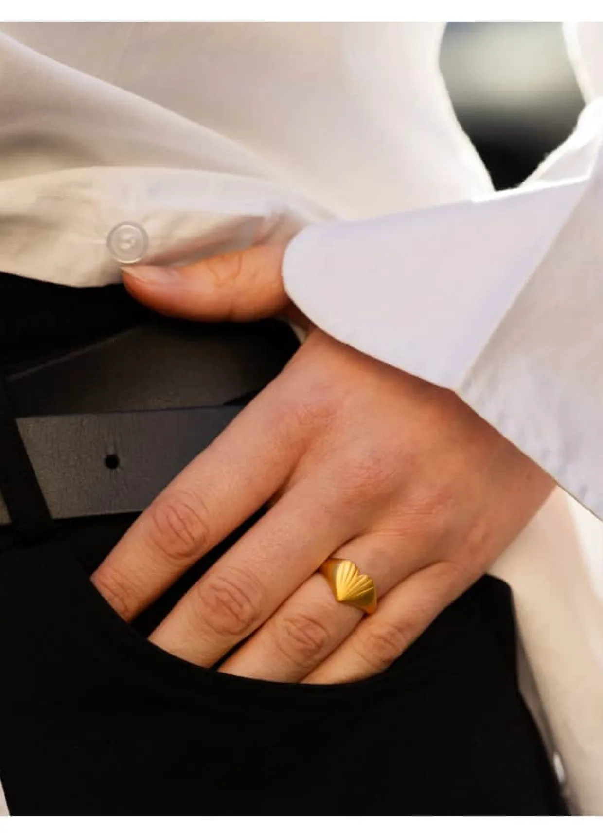 Ringen er lavet i forgyldt 925 sterling sølv. Forgyldningen er 14 karat forgyldning og en børstet overflade.