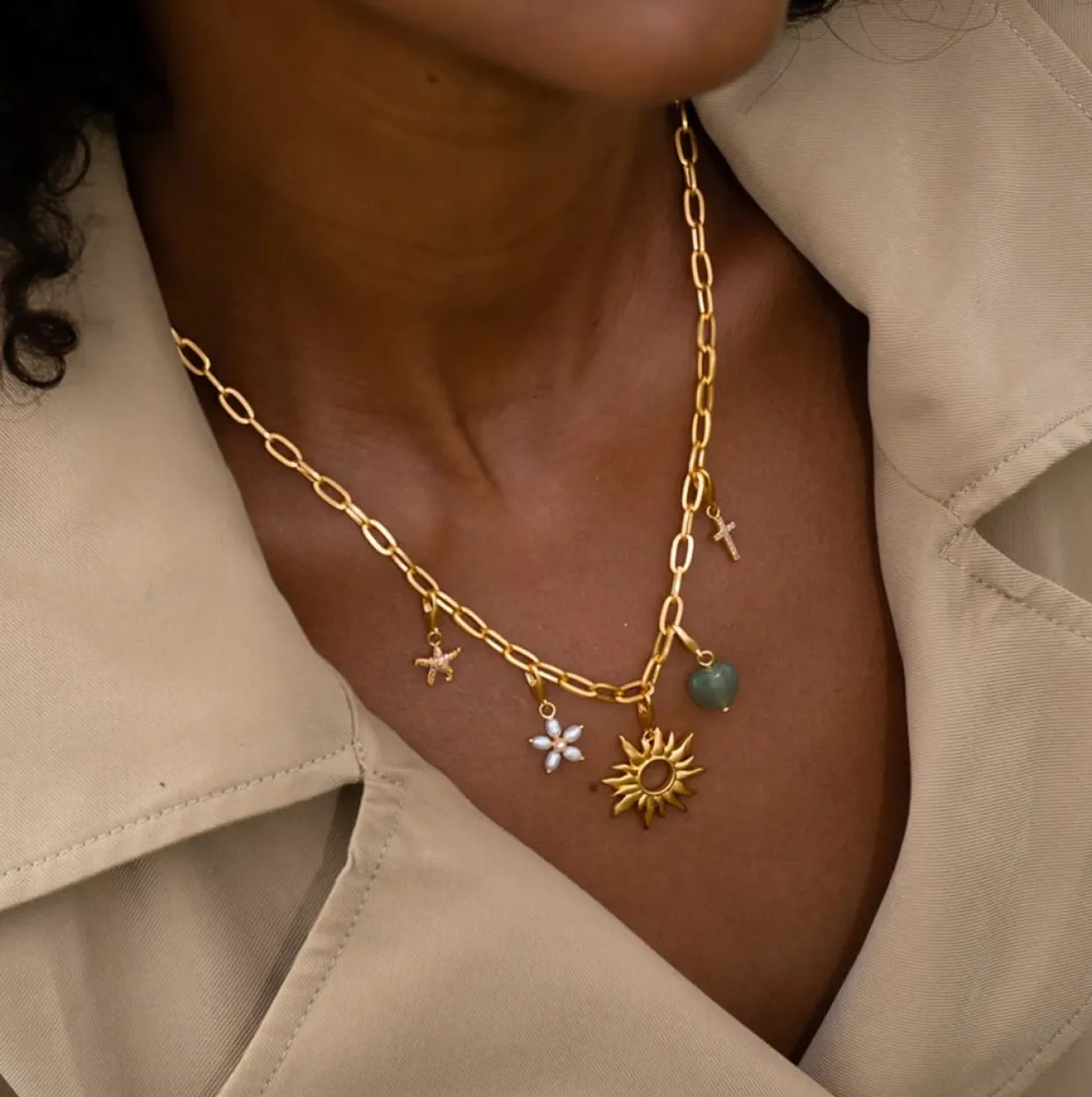 Vedhænget er et elegant og tidløst charm, designet i forgyldt metal og prydet med en smuk perle. Charmet kombinerer klassisk luksus med moderne stil og tilføjer et sofistikeret touch til dit smykkesæt. Den delikate perle og den varme, forgyldte finish gør det til et ideelt valg for dem, der ønsker at tilføje et strejf af raffinement til deres armbånd eller halskæde. Et smykke, der udstråler både elegance og enkelhed.
