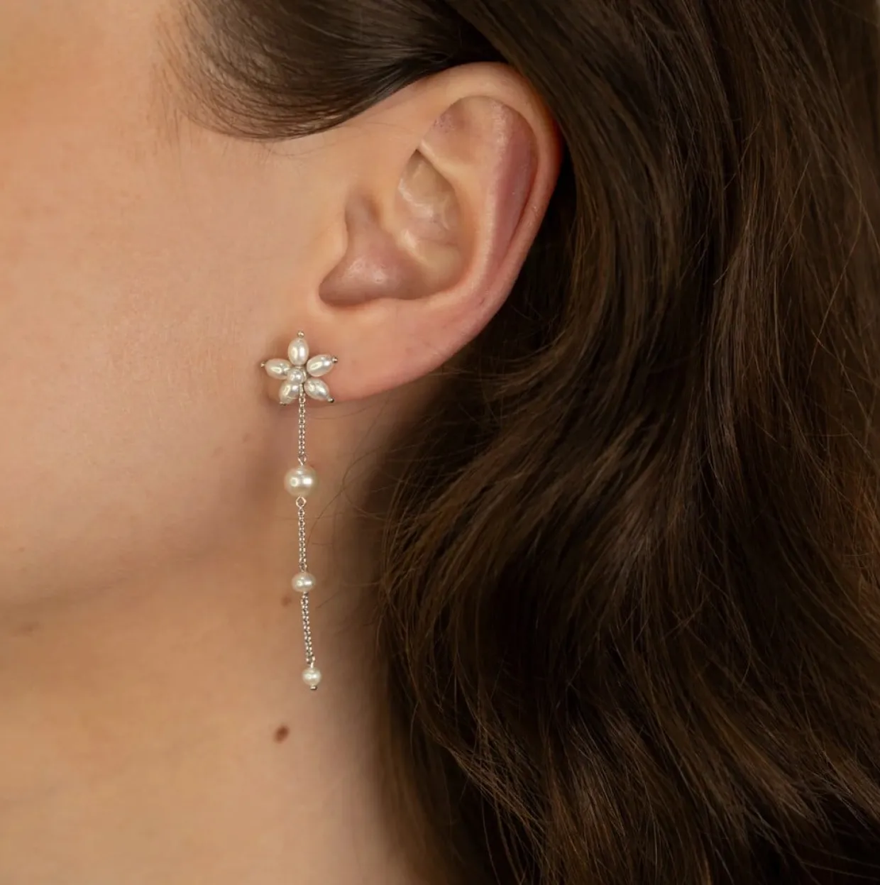 BYBIEHL PEARL SIGNATURE LONG ØRERINGE SØLV MED PERLER – 4-040WP-R