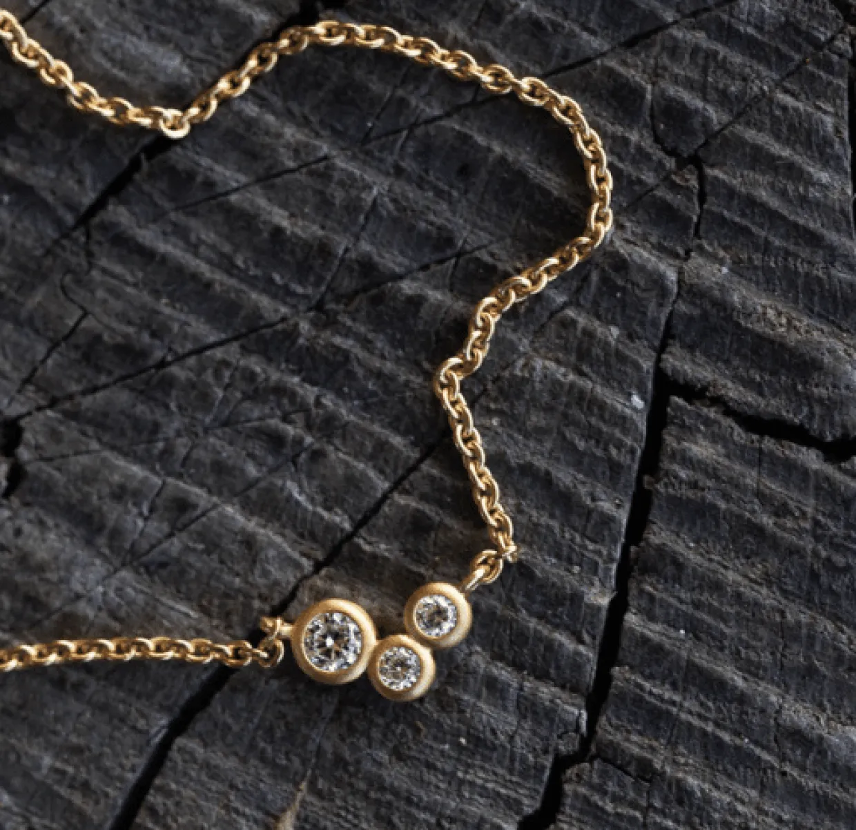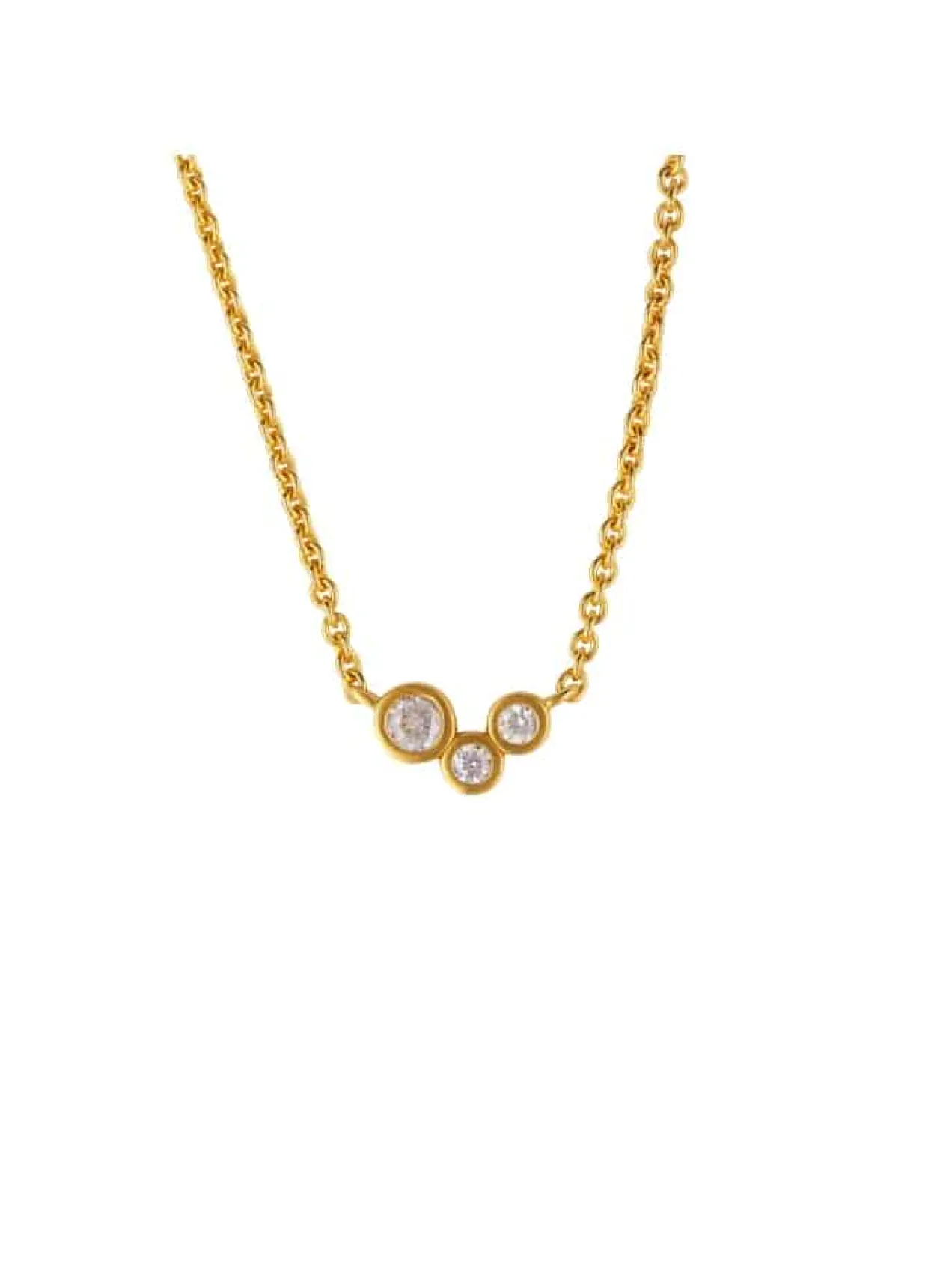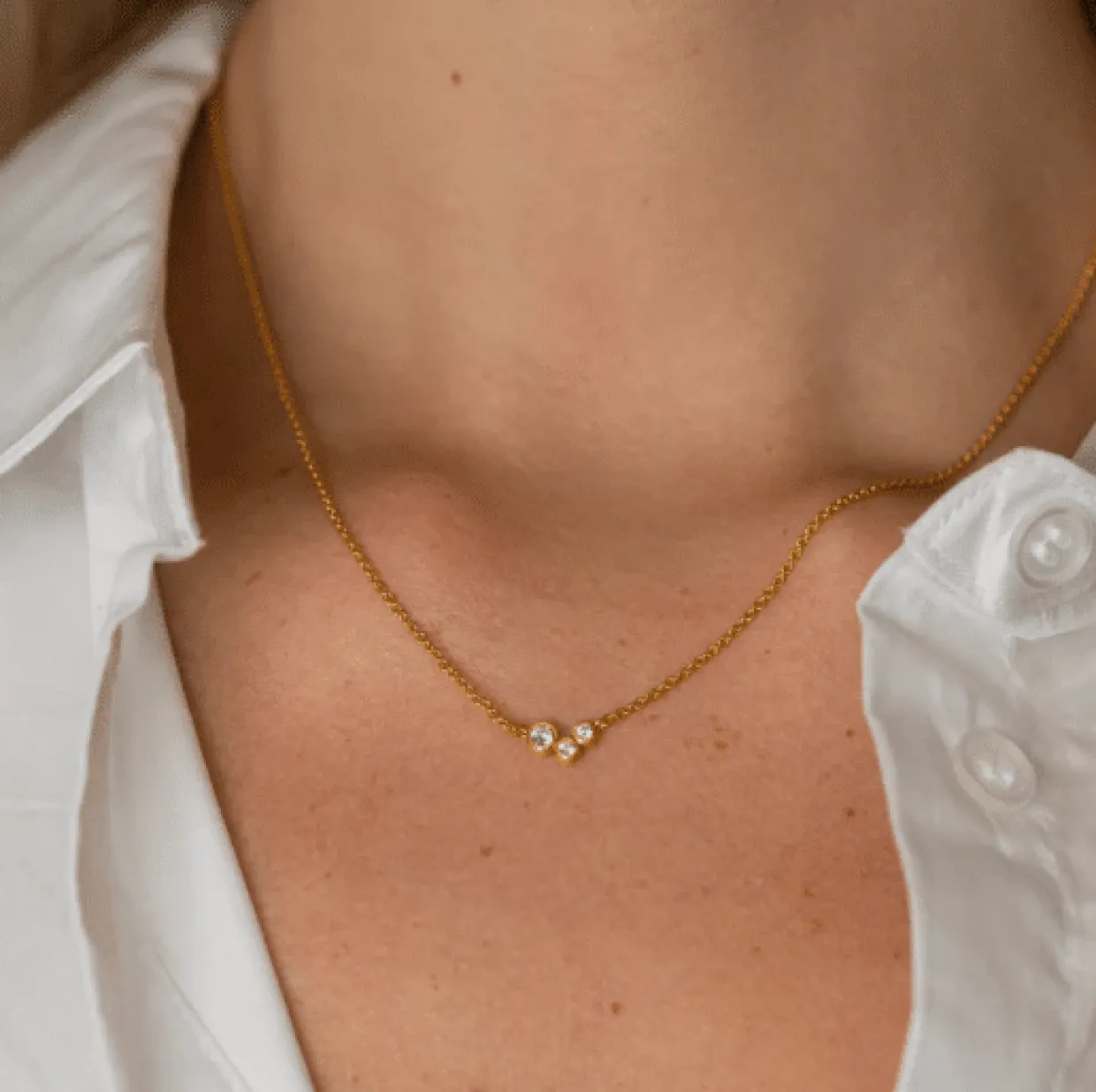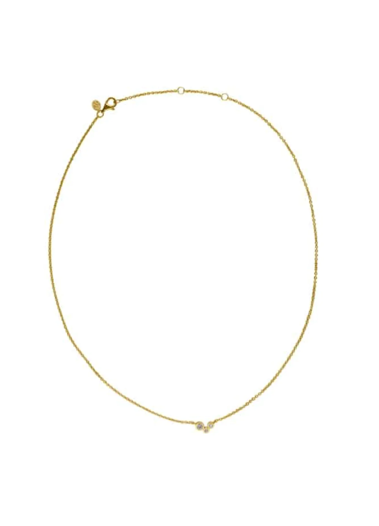 Denne fine minimalistiske kæde med tre små zirkoniaer er en fin klassiker. Halskæden falder flot om halsen. Dertil er kæden også flot at sætte sammen med andre kæder.