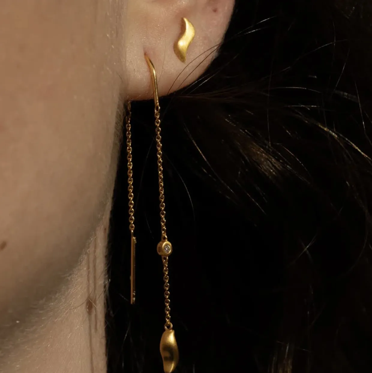 BYBIEHL JUNGLE IVY SPARKLE STRING ØRERINGE SØLV FORGYLDT – 4-3111A-GP