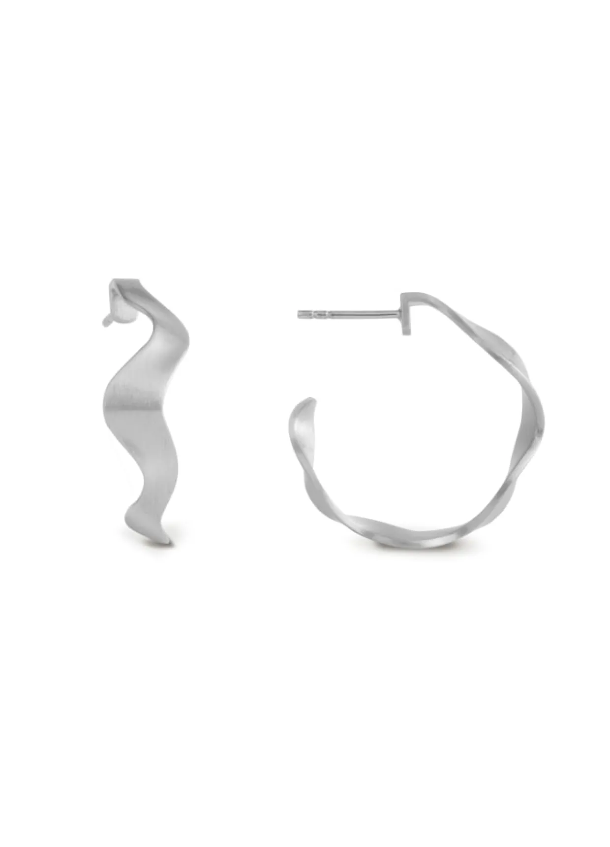 Elegante og enkelte øreringe med et flot bølget motiv. Øreringene passer perfekt til hver en anledning. Øreringene er lavet ud af 100% genbrugs sterling sølv. Øreringene måler 2 mm i diameter.