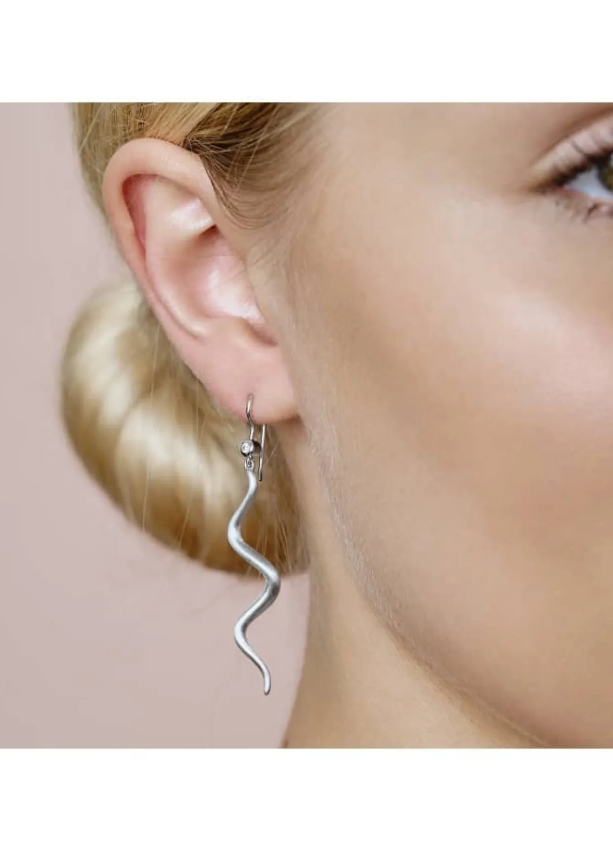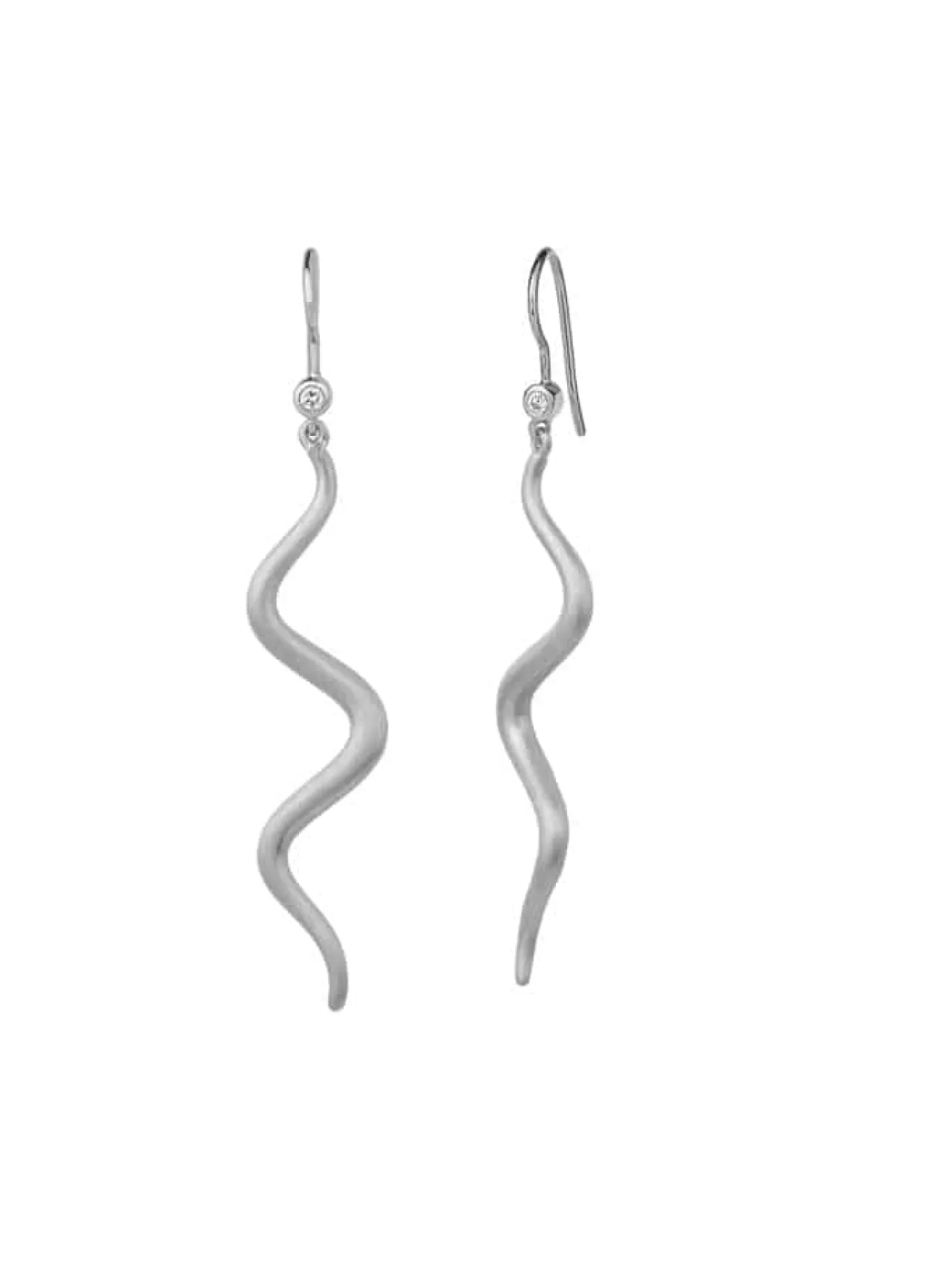 Ørehængere i sølv er i lækkert og moderne design. Ørehængerne har en bølgeformet design som gir en flot bevægelse og stil til ørene. De er lavet af 925 sterlingsølv og er let af bruge med en sikker lukning. Disse ørehængerne passer perfekt til både hverdagsbrug og specielle anledninger og vil være en flot tilføjelse til enhver smykkesamling.