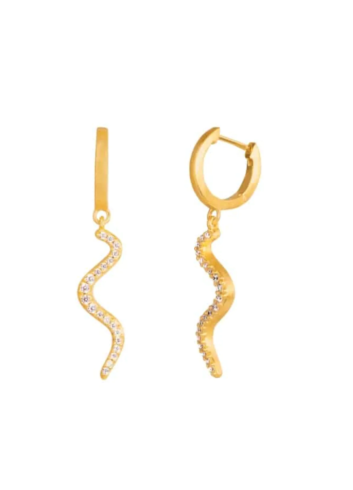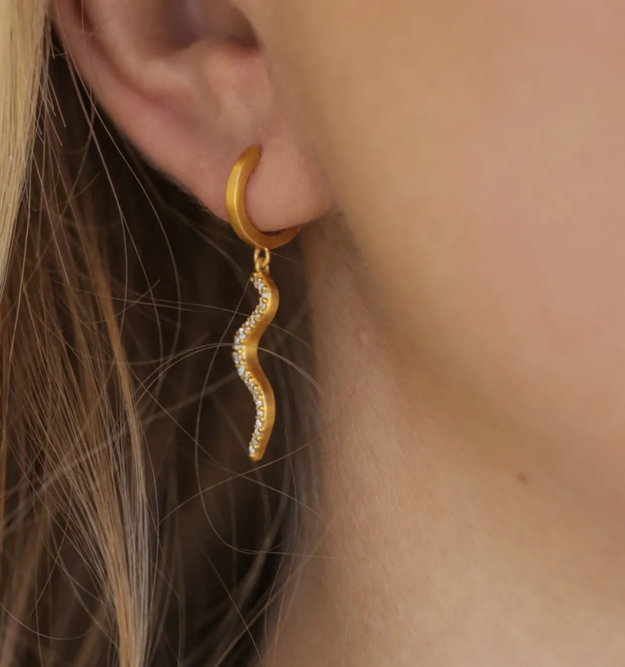 Disse fine små creoler med med en bølge med fine små zirkonia der blødt bevæger sig under øret. Øreringene er en fin luksusørering der virkelig kan ses på øret.