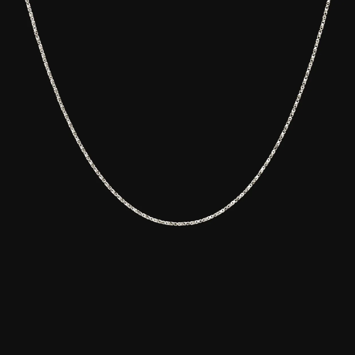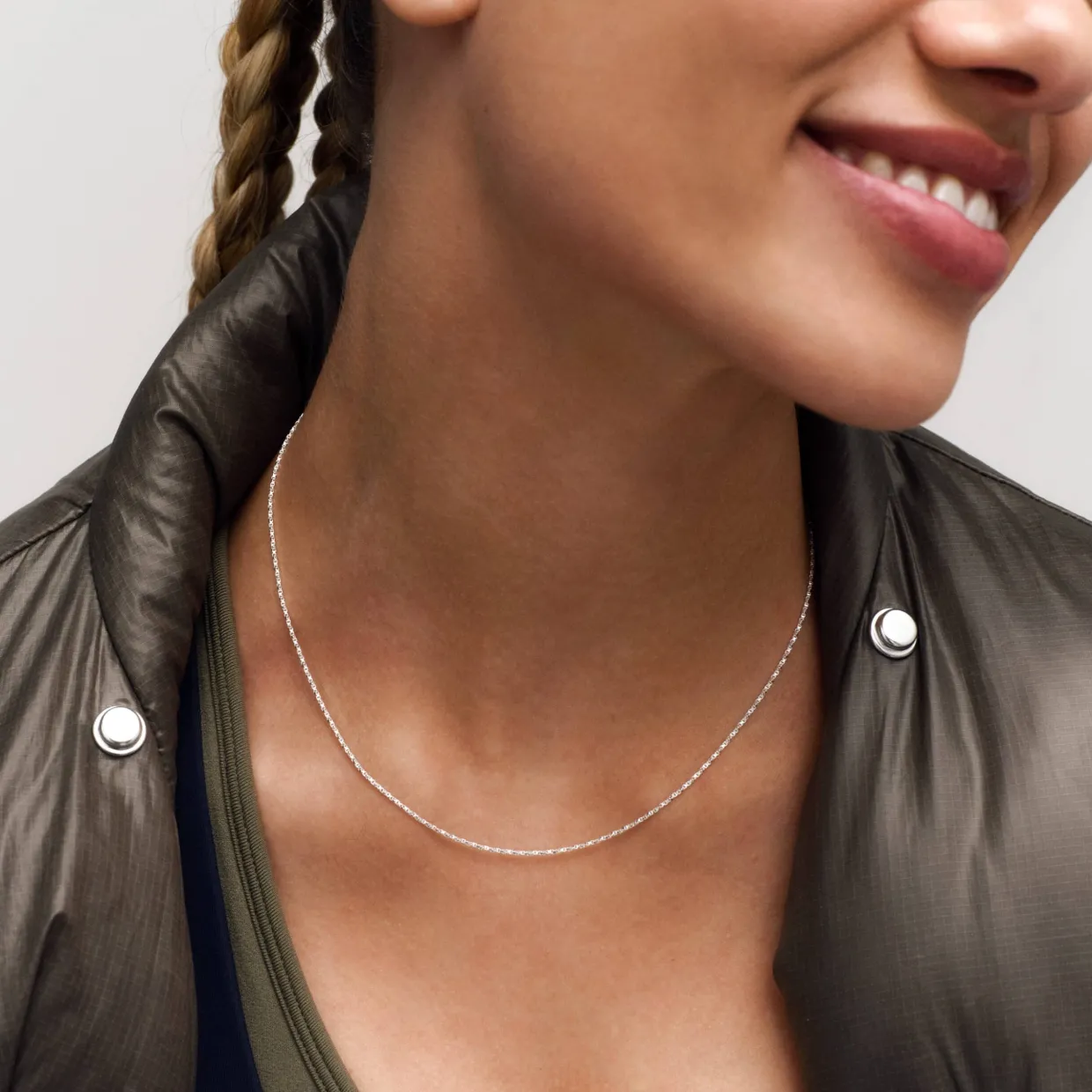 Halskæden måler ca. 1 mm i bredden og kan indstilles til 42-45 cm i længden.