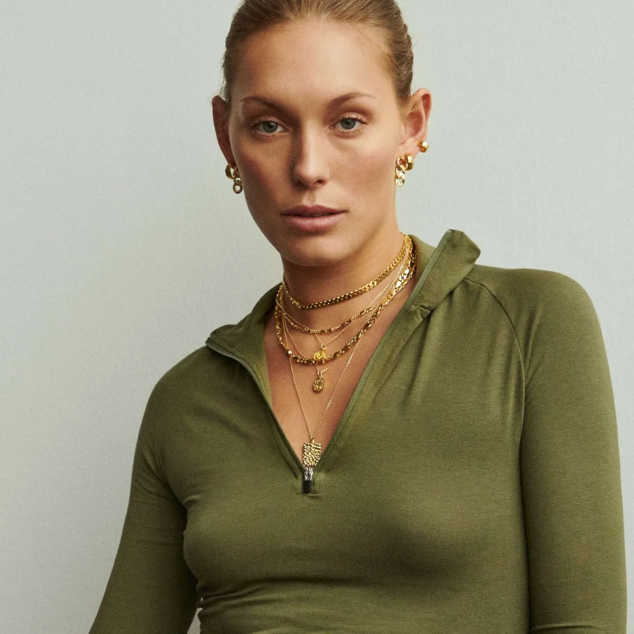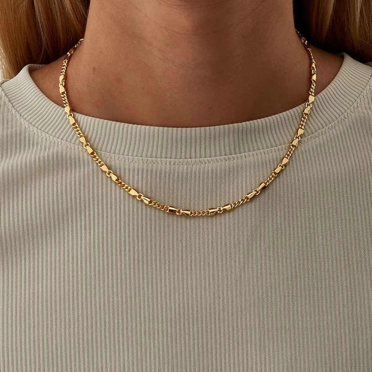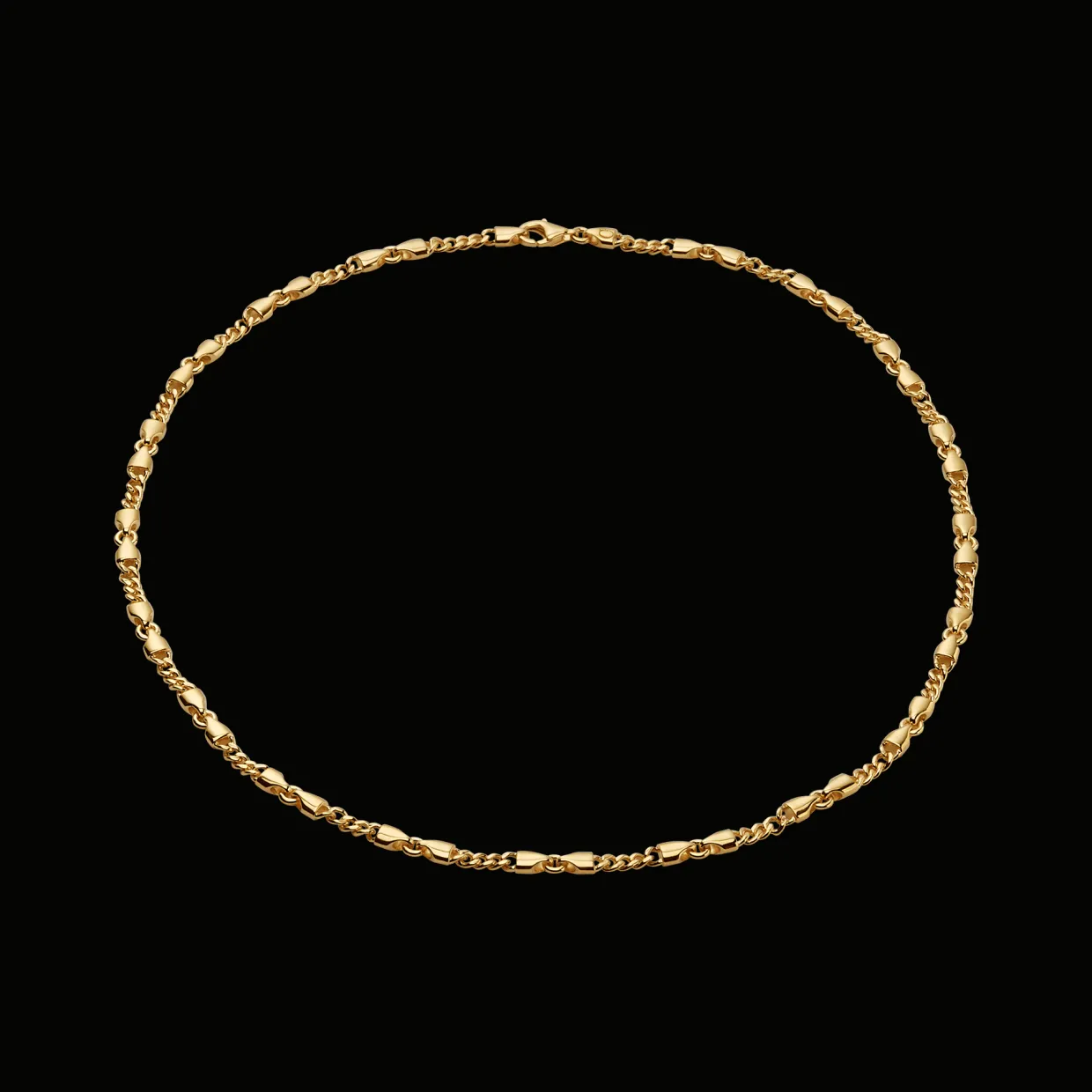 Halskæden er lavet i massiv 925 forgyldt sterling sølv. Forgyldningen er en 22 karat forgyldning.