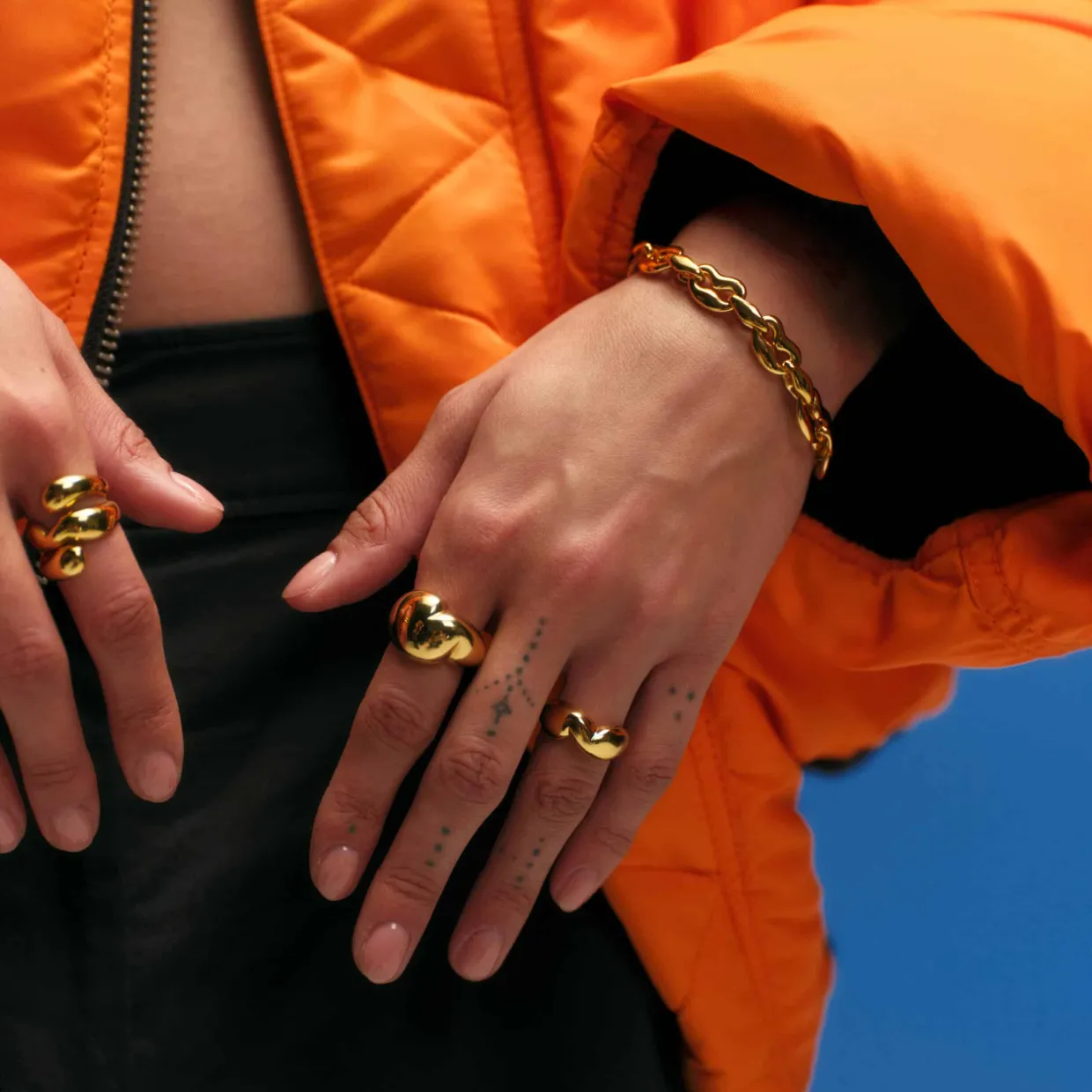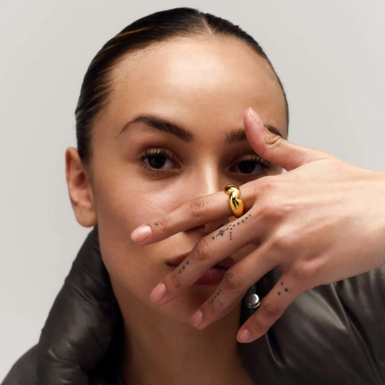 Camille Brinch Medium Puffer Ring i forgyldt sølv er en stilfuld og moderne ring designet af Camille Brinch. Ringen er lavet af 925 sterling sølv, som er belagt med et lag af 22 karat guld for et elegant, varmefuldt udseende. Designet er inspireret af puffede, bløde former, hvilket giver ringen en luksuriøs og skulpturel følelse.