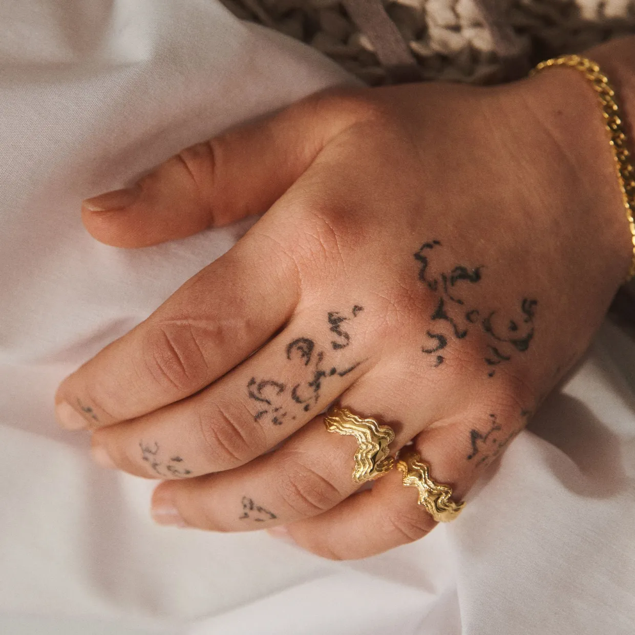 Camille Brinch Mellem Blurry Layers ring i forgyldt sølv er et smukt og moderne smykke. Denne ring er designet med et unikt udtryk, hvor bløde og organiske former kombineres for at skabe en drømmende effekt.