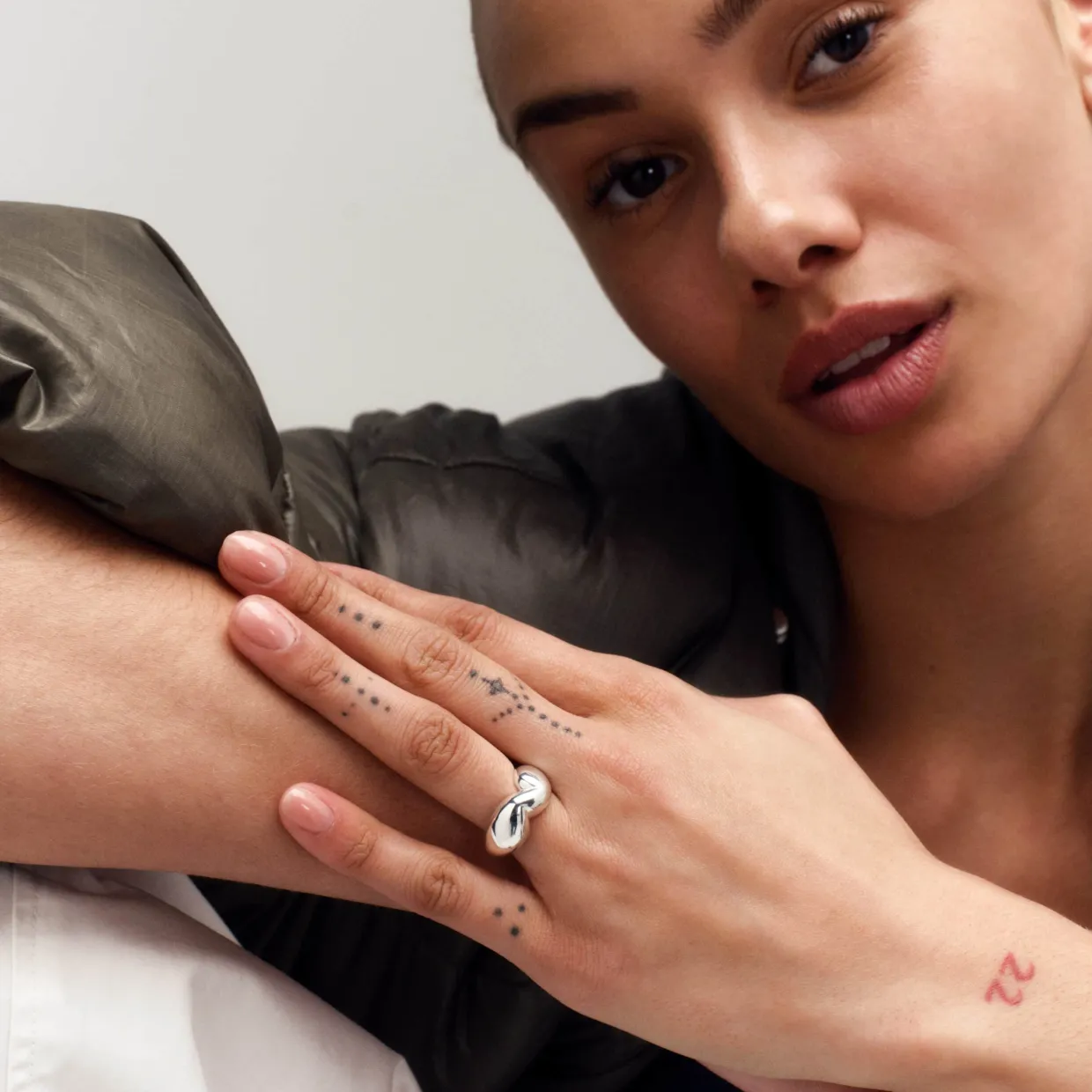 Ringen er lavet af sterling sølv og har en mellemstor puffer-effekt, der giver den et voluminøst og blødt, afrundet udseende. Designet balancerer mellem det minimalistiske og det unikke, hvilket gør den perfekt til både hverdagsbrug og mere formelle anledninger. Dens glatte, blanke overflade fanger lyset smukt og tilføjer et sofistikeret touch til enhver stil. Ringen er velegnet til at blive båret alene eller i kombination med andre smykker for et mere personligt udtryk.