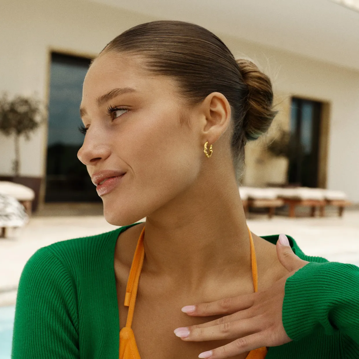 De små Shiny Sparkly hoops fra Camille Brinch er det perfekte mix af tidløs elegance og moderne design. Udført i sterlingsølv og belagt med 22 kt. forgyldning, får de en varm gylden glød, der giver et eksklusivt udtryk.