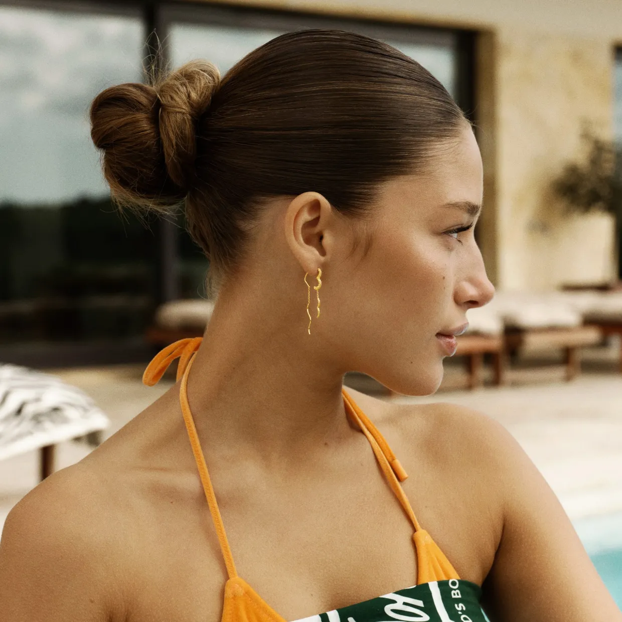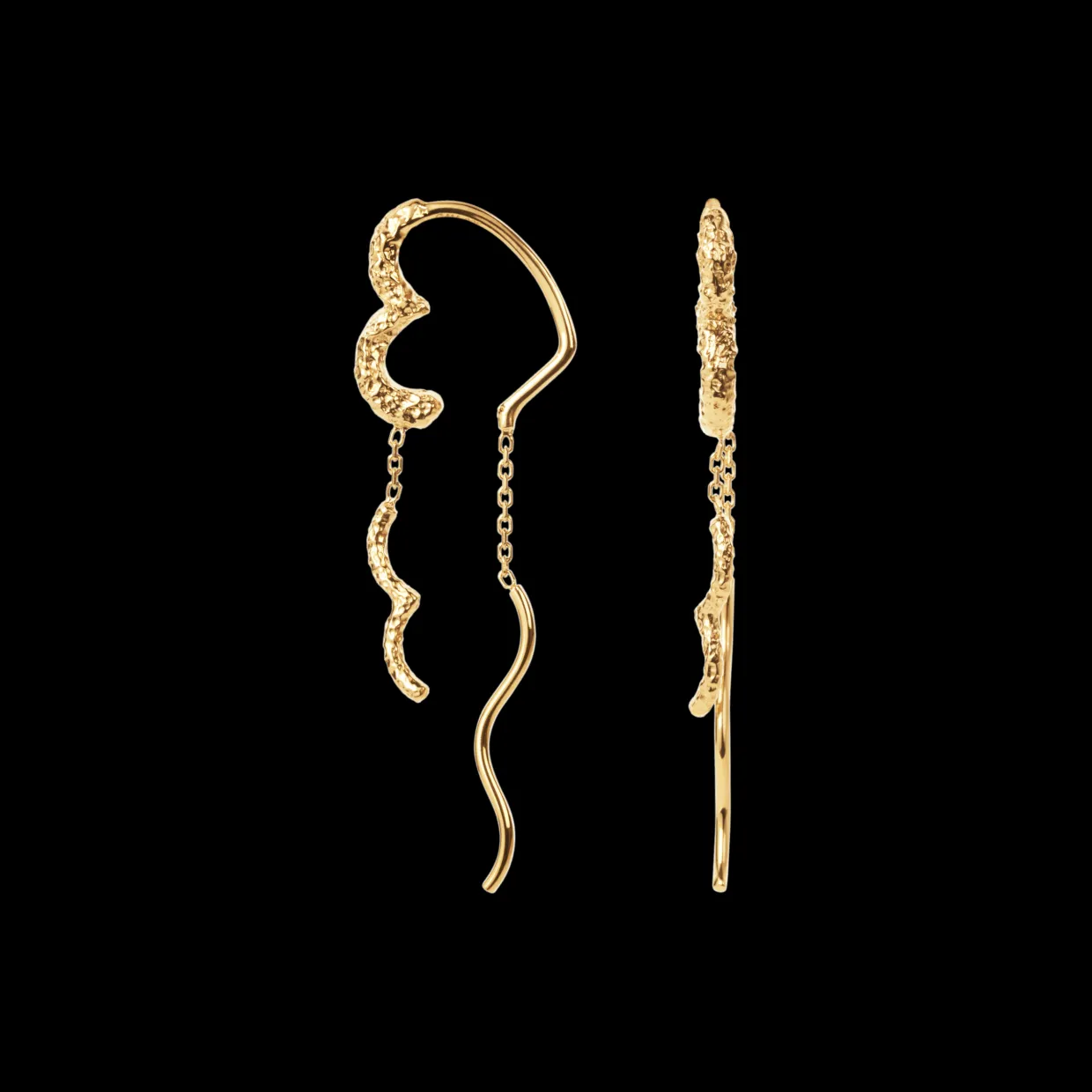 De fortryllende Wavy Sparkly Heart Earlines fra Camille Brinch kombinerer romantik og moderne elegance på smukkeste vis. Udført i sterlingsølv og belagt med 22 kt. forgyldning, får de en varm, gylden glød, der understreger deres feminine udtryk.