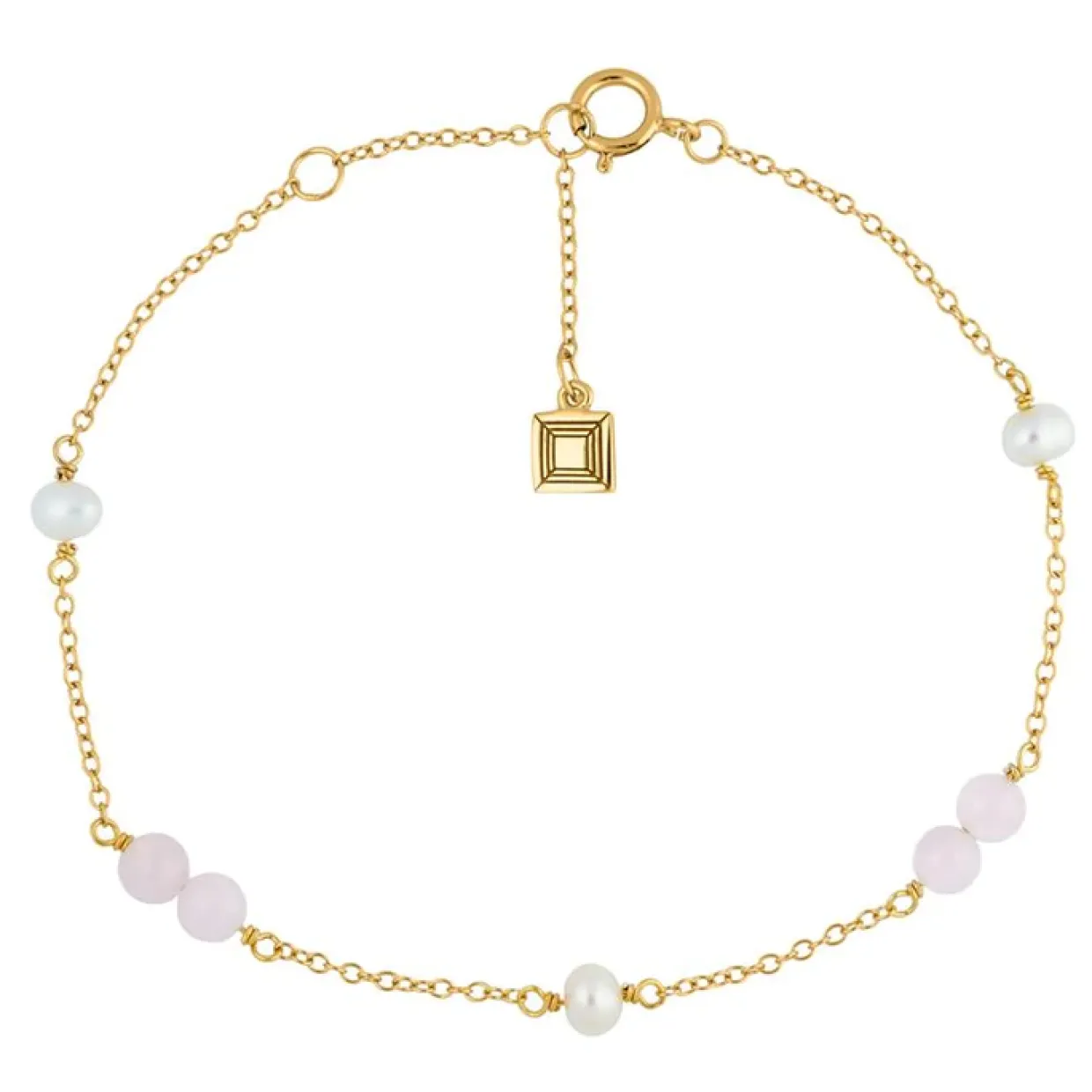 CARRÉ GEM CANDY ARMBÅND SØLV FORGYLDT MED PERLE OG ROSA KVARTS – FB 4316 BIRQ 16+1,5+1,5