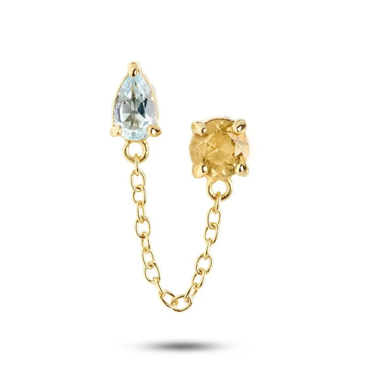 Denne fine ørestik er fremstillet i sterling sølv som er belagt med rød guld. Øreringen er sat med blå topas og citrin. Øreringen passer til to huller i samme øre og sælges enkeltvis.