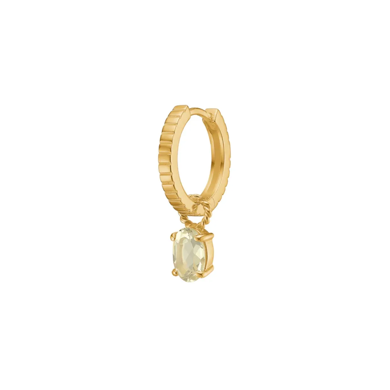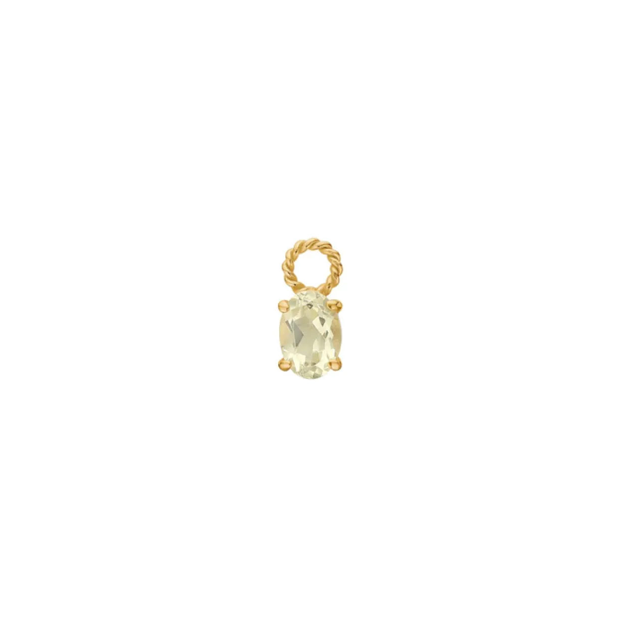 Dette fine vedhæng til creol øreringe, er fremstillet i sterling sølv og belagt med rød guld. Vedhænget er i sat en lemon kvarts i en grabbe fatning. Vedhænget er fra brand serien ‘gem candy’ hvor du finder et væld af farverige sten i forskellige smykker.