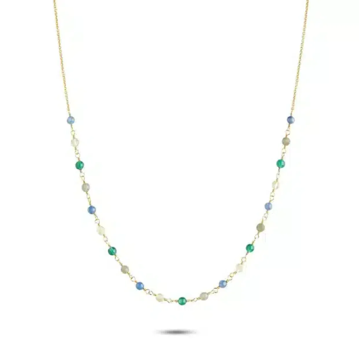 Halskæde fra Carré lavet i 925 forgyldt sterling sølv, på halksæden er der flere forskellige sten i mix med Kyanit, Laberadorit, grøn agat og citrin.