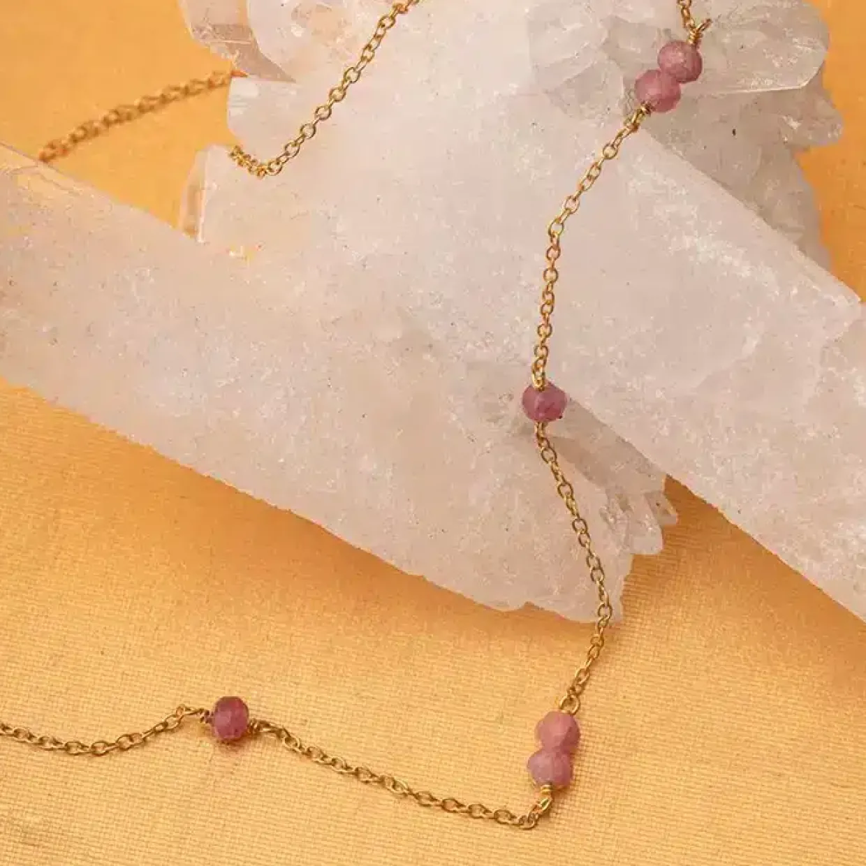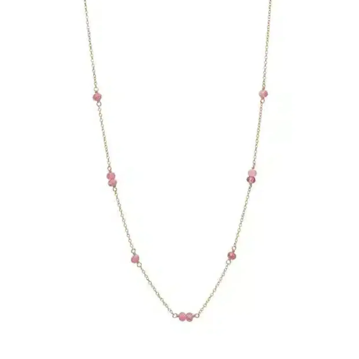 Halskæde fra Carré lavet i 925 forgyldt sterling sølv, pyntet med de flotteste pinke turmaliner.