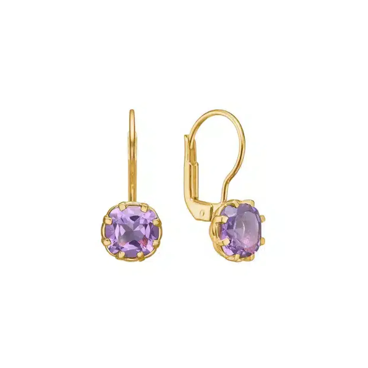 Smukke guldbelagte ørebøjler med facetteret ametyst.