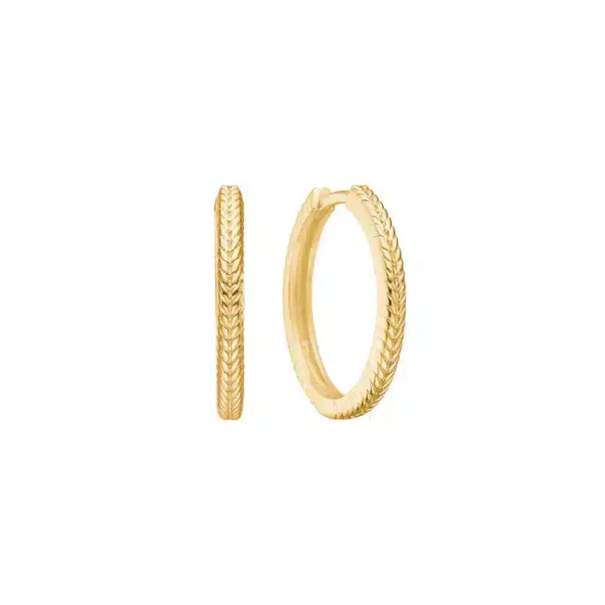 Creoler i forgyldt sølv, designet med flettede detaljer. Øreringene er 2 cm, findes også i 1 cm og 1,5 cm.