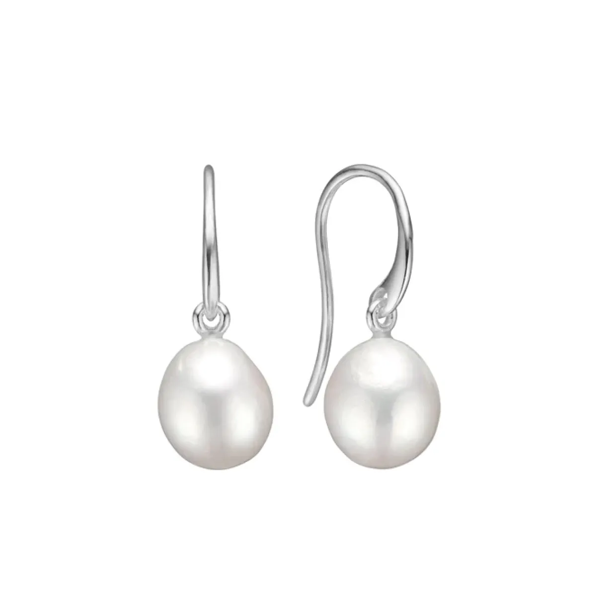 Øreringe lavet i 925 sterling sølv, ørehængerne er designet en en buttet flot hvid barok perle isat.