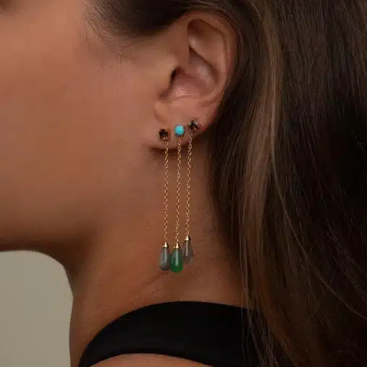 CARRÉ PASHA ØRERINGE SØLV FORGULDT MED TURKIS/GRØN AGAT – FS 4412 TQGR