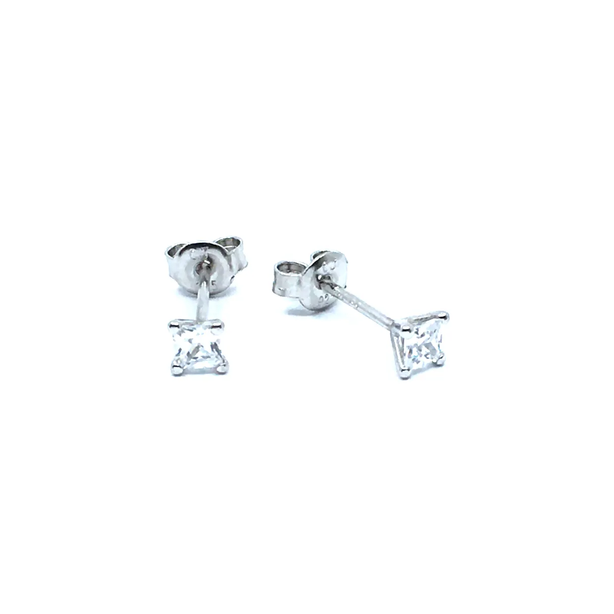 Sølv øreringe på stik med syntetisk zirkonia. Øreringene er rhodineret så de holder sig pænere i længere tid.