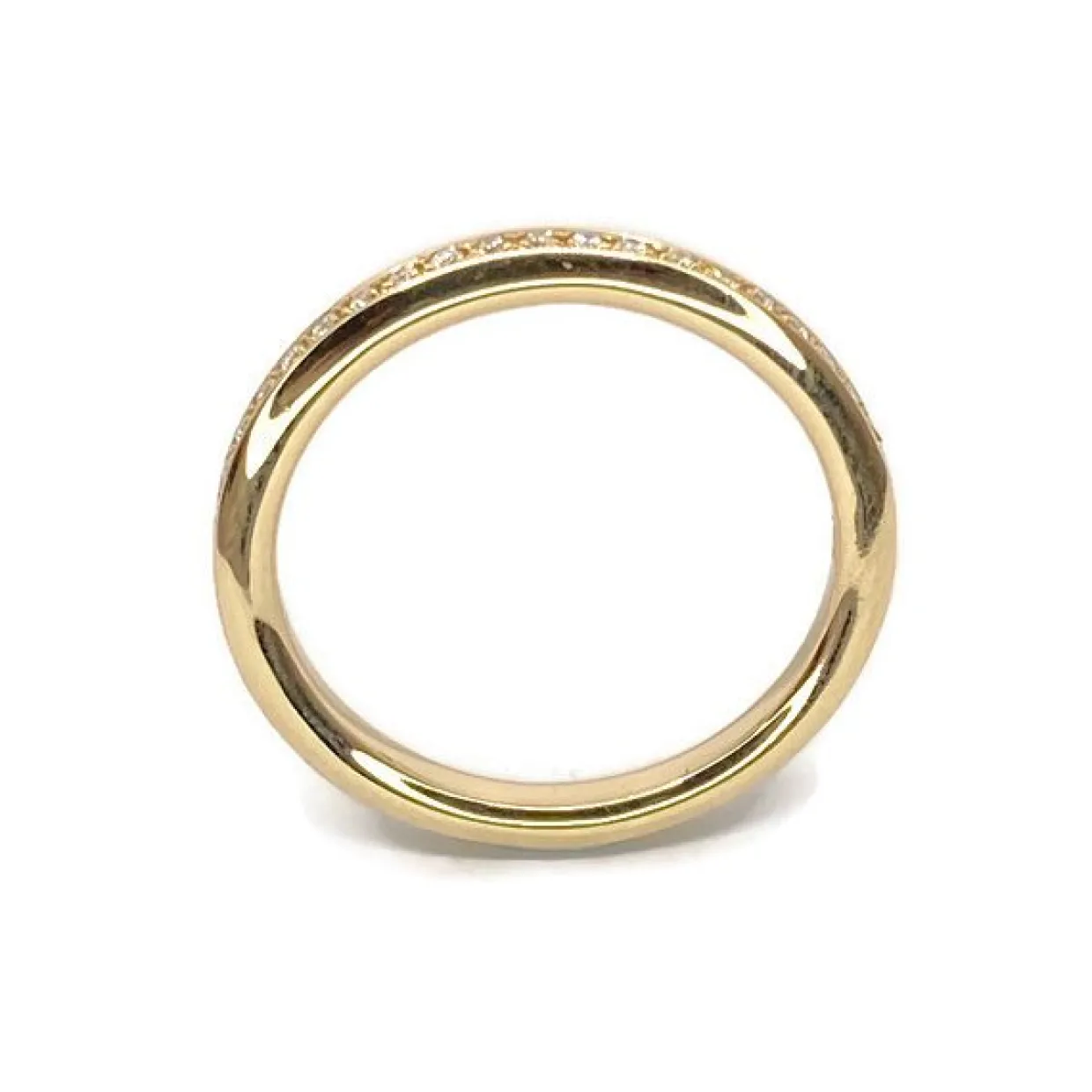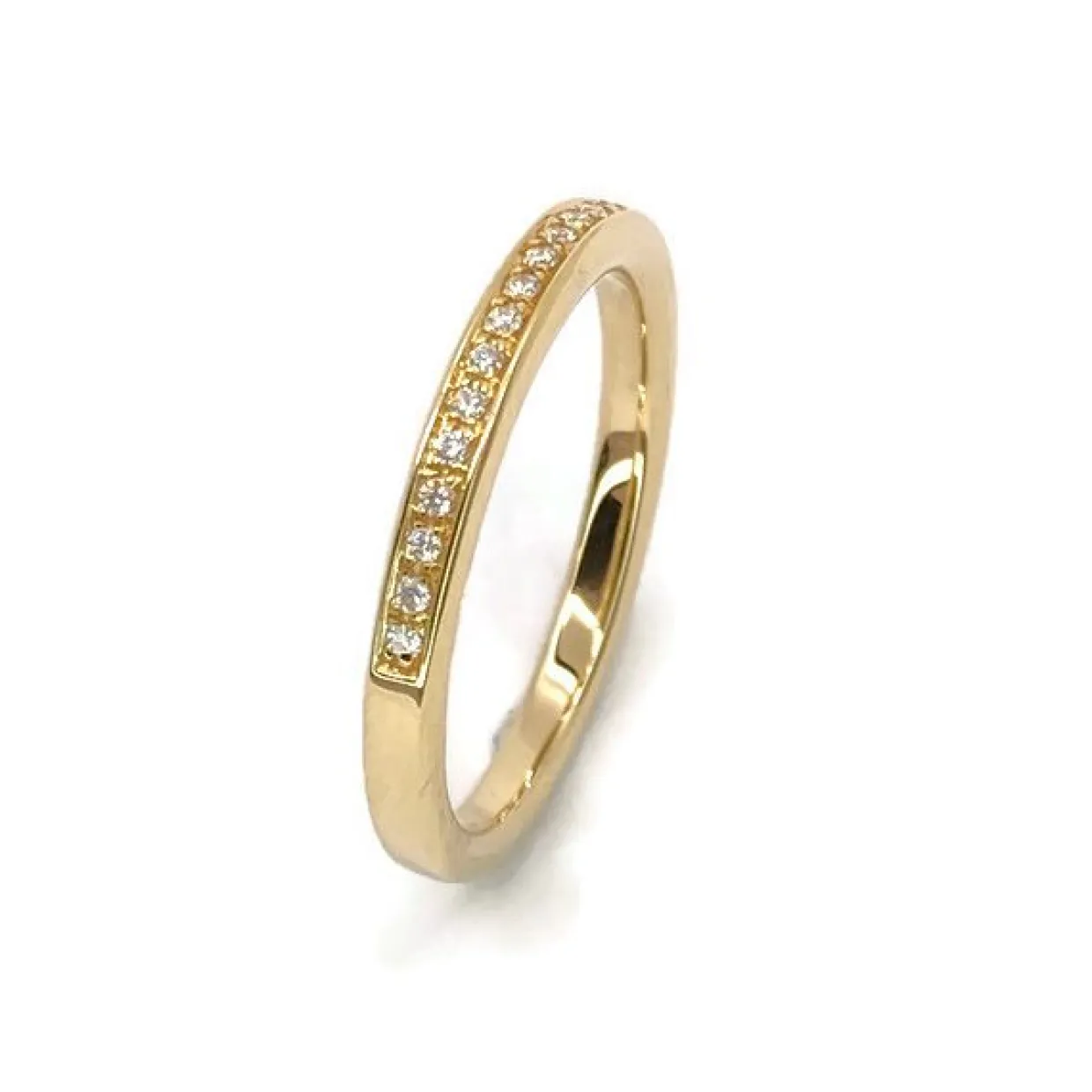 Christoffersen Jewellery 14 karat massiv guld med brillanter på i alt 0,10 carat. Ringen er rund i skinnem og brillanterne sidder halvvejs rundt. Ringen kan anvendes til daglig brug og kan sættes sammen med andre ringe.