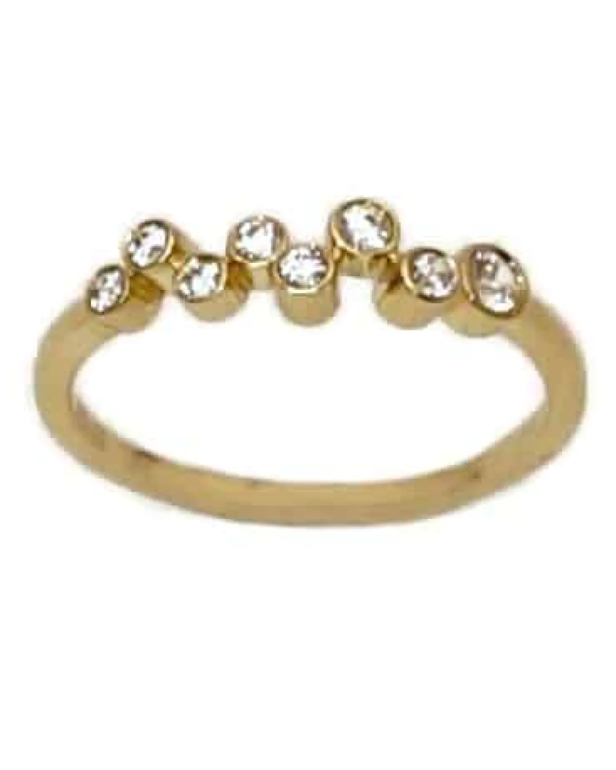 Denne smukke ring fra Christoffersen Jewellery er udført i 8 karat guld og prydet med otte funklende zirkoniasten. Stenene er rørindfattede i forskellige størrelser og højder, hvilket skaber et spændende og levende udtryk med elegant spil i lyset.