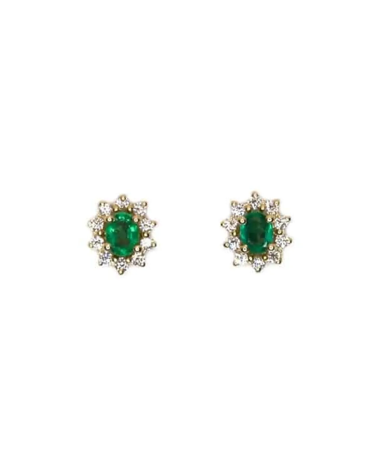 I hver ørestik sidder en grøn smaragd omkranset af 0,19 carat brillanter i kvaliteten w/si.
