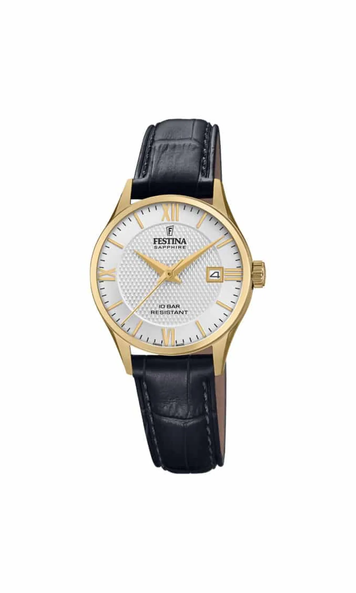 FESTINA SWISS MADE UR DAME GULD FARVET MED SORT LÆDERREM – F20011/1