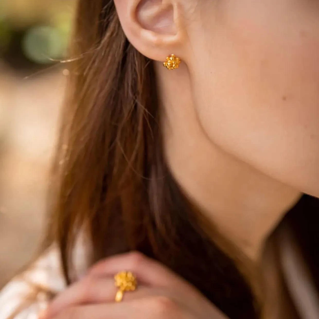 Disse smukke og ikoniske ørestikker med dild er fremstillet i sterling sølv og forgyldt med 22 karat guld. De måler ca.7-9mm. Flora Danica har lavet disse ørestikker i anledningen af deres 70 års jubilæum.