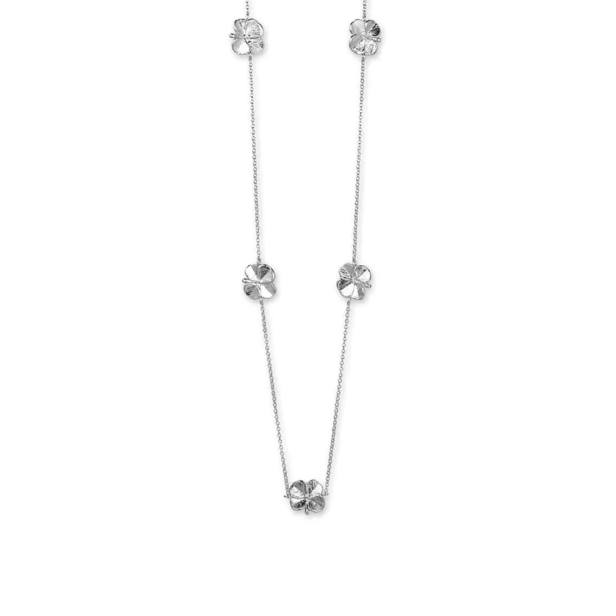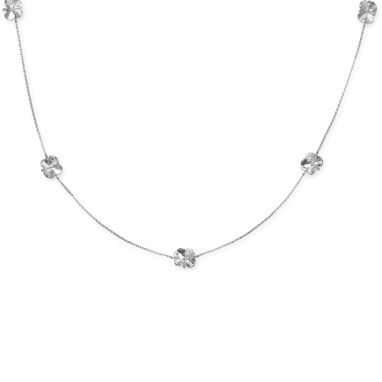 FLORA DANICA FIRKLØVER HALSKÆDE I SØLV MED FEM KLØVERE – FLC-NELO-S