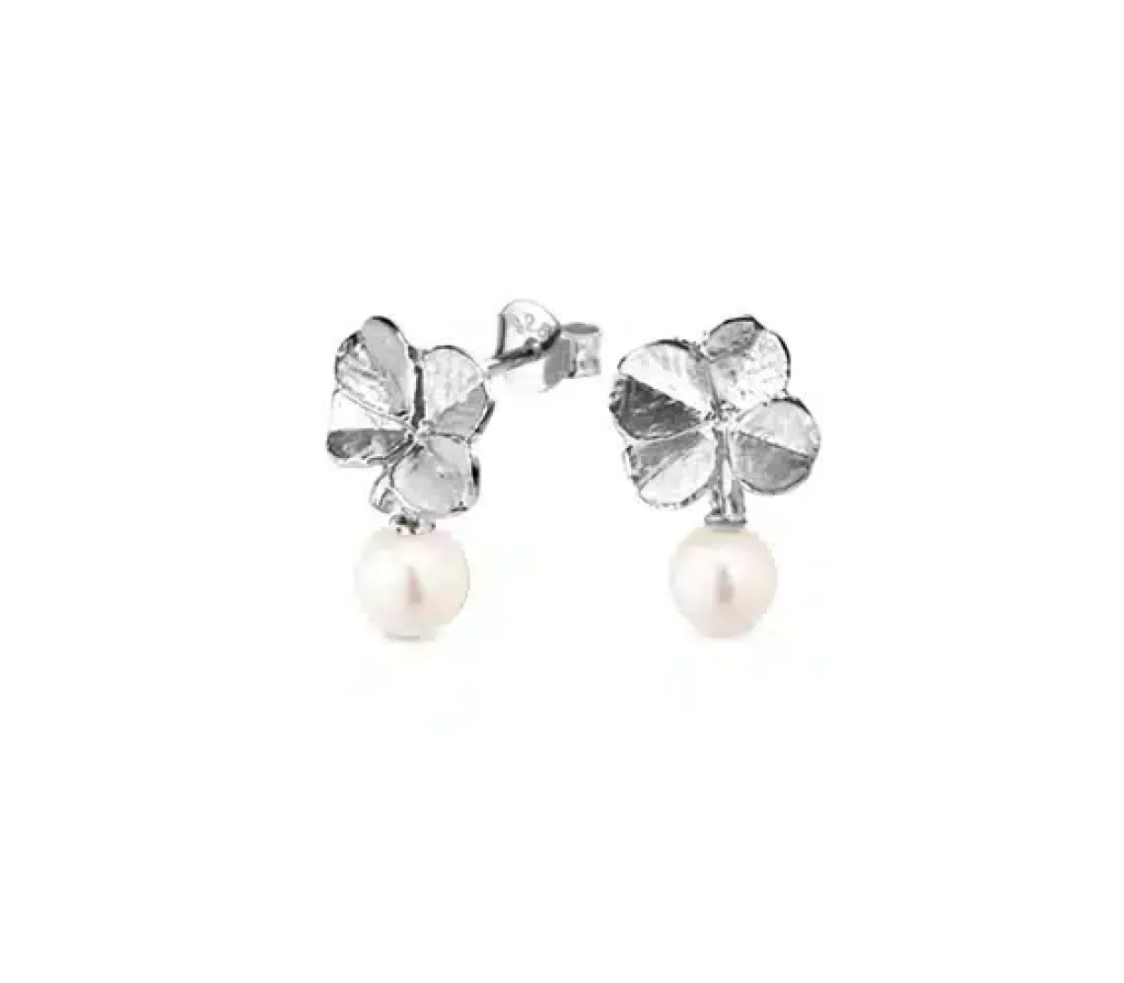 FLORA DANICA FIRKLØVER ØRERINGE MED PERLE – FLC-STPCPEARL-S