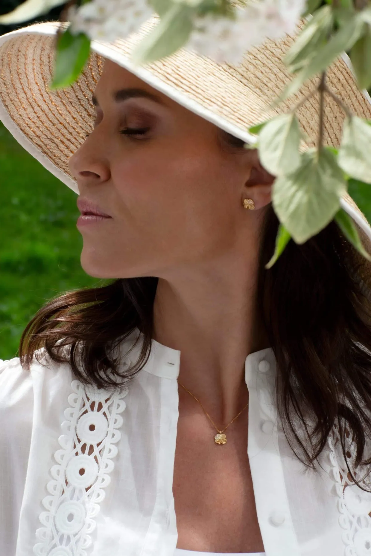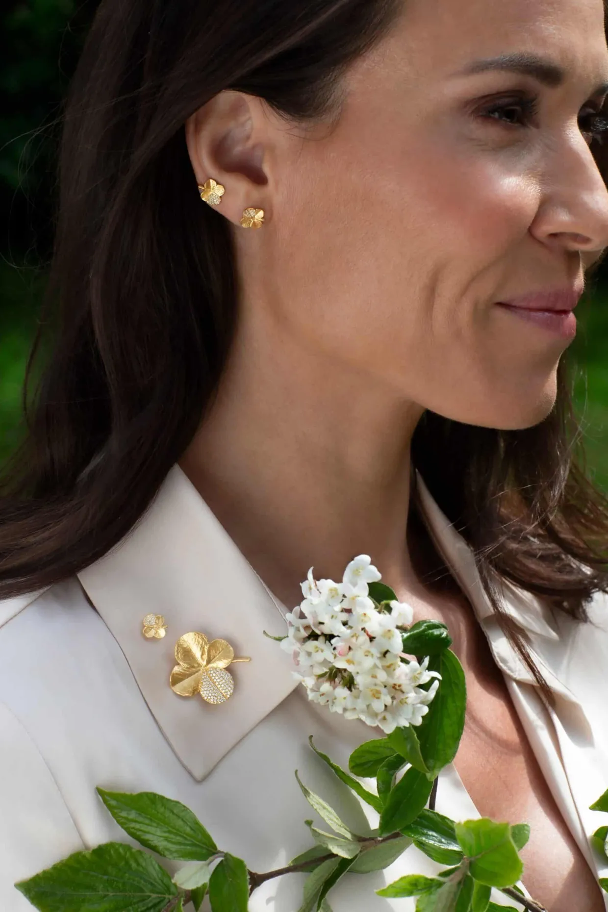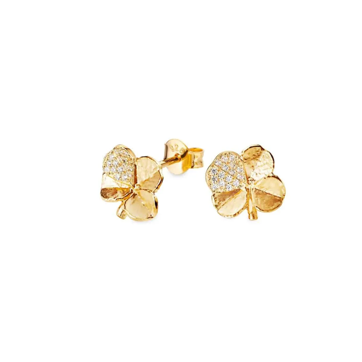 FLORA DANICA FIRKLØVER ØRESTIK PAVÉ FORGYLDT SØLV – FLC-STPC-G-PAVE