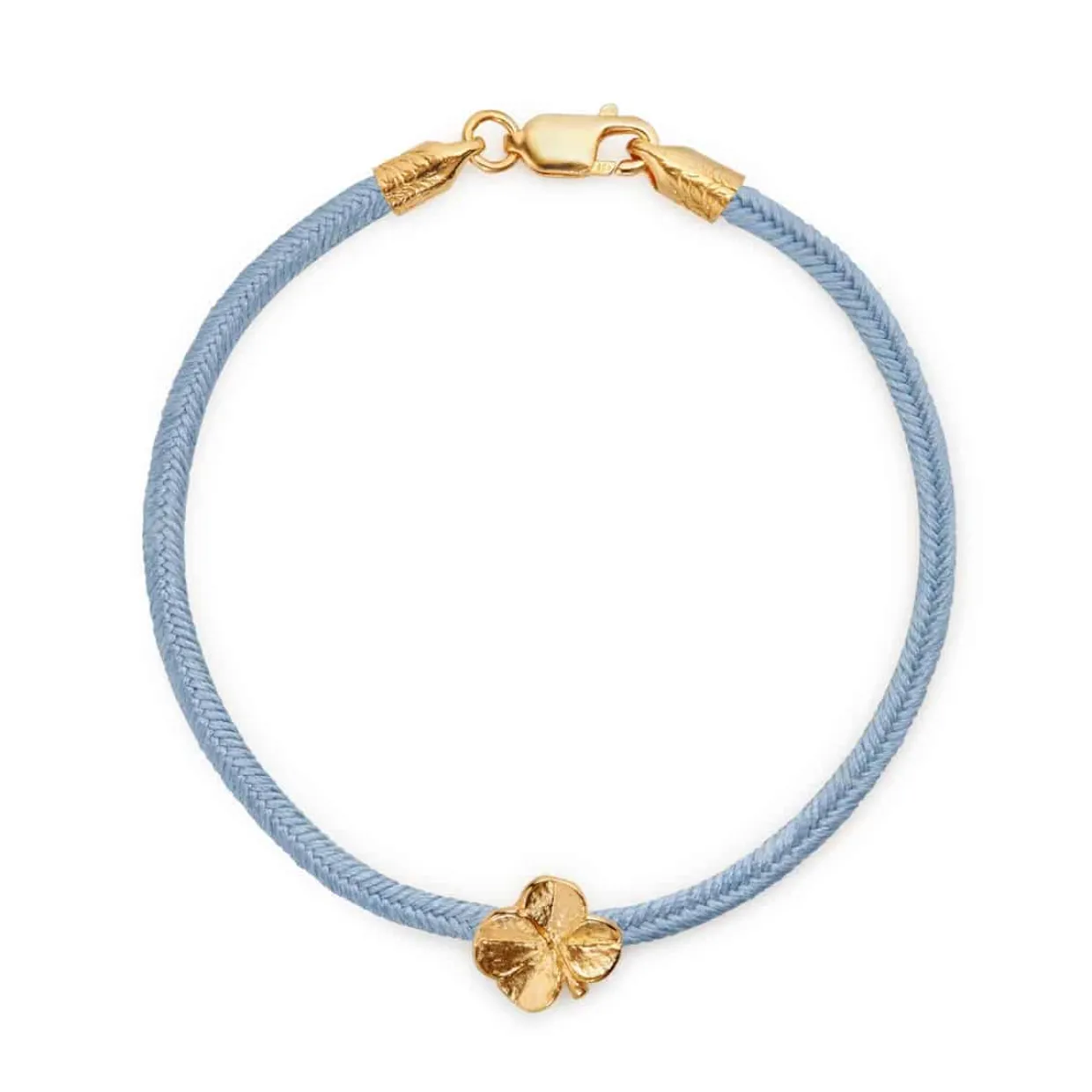 FLORA DANICA FIRKLØVER SILKEARMBÅND BLÅT FORGYLDT SØLV – FLC-SILK-BLUE-16-G