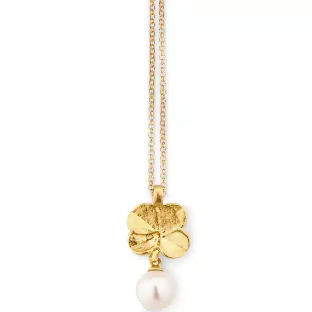 FLORA DANICA HALSKÆDE MED FIRKLØVER OG PERLE – FLC-NEPEARL-G
