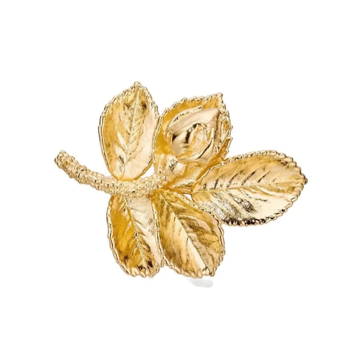 Perfekt som et sofistikeret statement til kjolen, frakken eller blazeren. Den delikate rosedesign og den subtile glans fra guldbelægningen sikrer, at den tiltrækker beundrende blikke uden at være påtrængende.