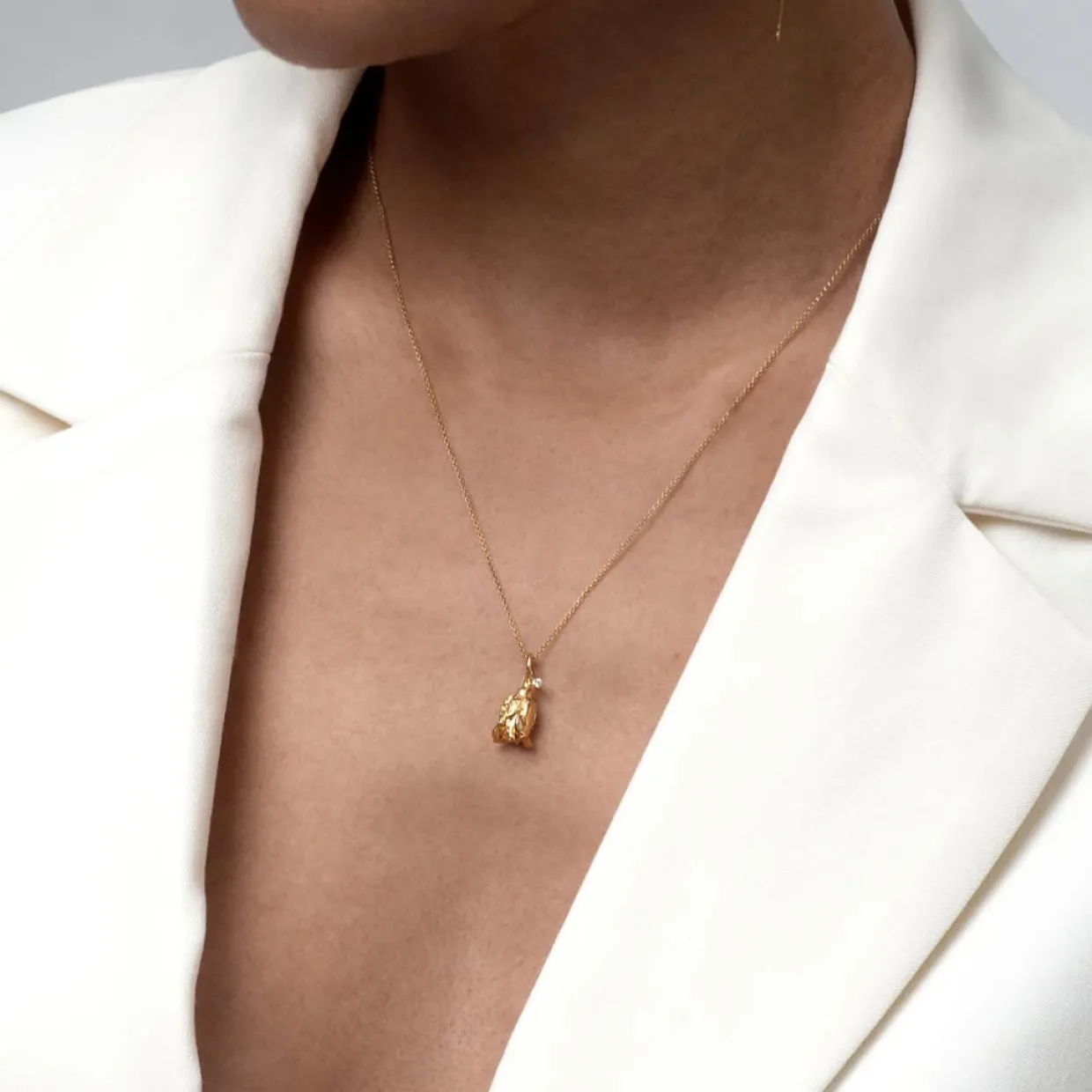 Denne halskæde er ideel som både en sofistikeret hverdags detalje og som et iøjnefaldende statement til særlige lejligheder. Kombinationen af den varme guldfinish og diamantens diskrete glans gør smykket til et tidløst og værdifuldt tilbehør i enhver smykkesamling.
